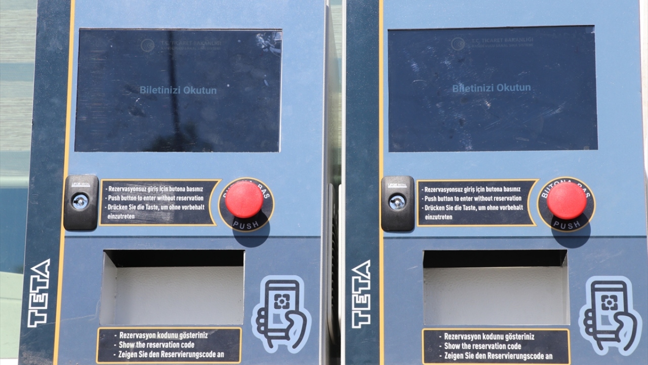 Şoför, cep telefonuna mesaj olarak gönderilen rezervasyon kodunu park giriş noktasında kurulan makineye okutarak parka giriş yapıyor.