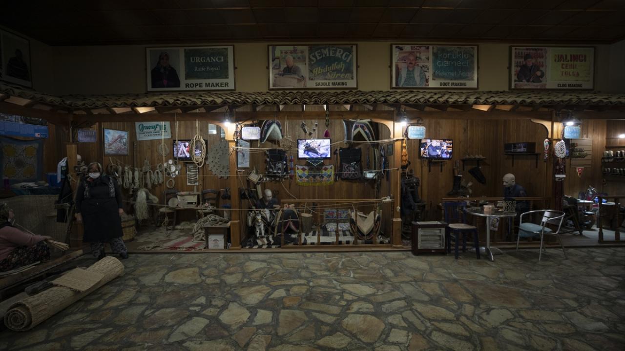 İçinde beledi dokuma, nalın, urgan, hasır, yorgan ve semer atölyeleri ile berber dükkanının bulunduğu müzede görev yapan 8 usta, ziyaretçilere uygulamalı olarak zanaatlarını sergiliyor.