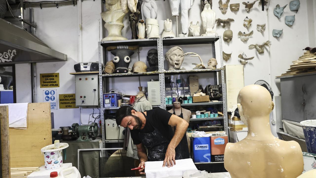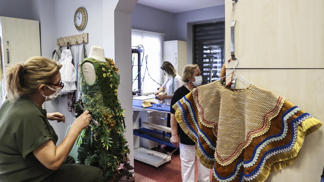 Müdürlüğün, kadın ve erkek terzi, şapka ve çiçek, demir, mekanik, marangoz, kundura, peruka ile elektronik atölyelerinin bulunduğu 25 bin metrekarelik alanında straforlardan dev heykeller ve sütunlar, masklar, dönem kıyafetleri, gelinlikler, ayakkabılar, peruk ve şapkalar büyük bir titizlikle hazırlanıyor.