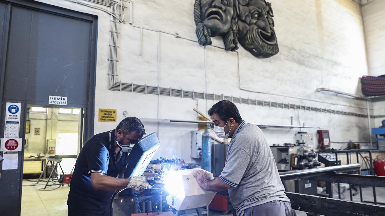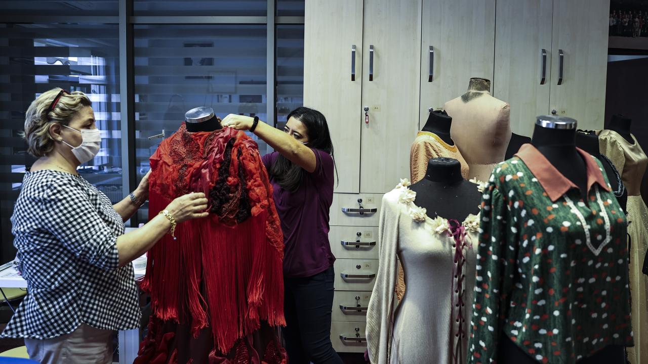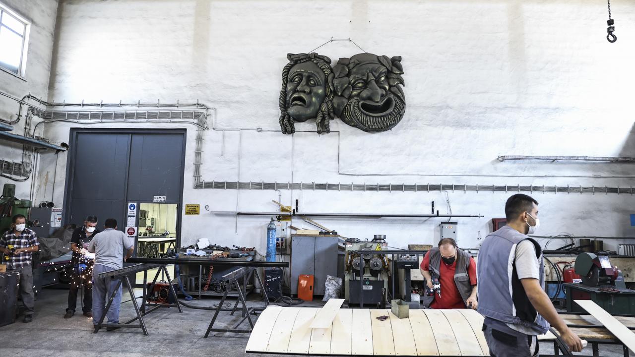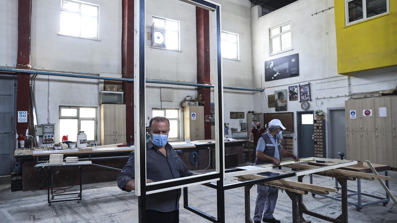 DT`nin bünyesindeki tüm Anadolu sahnelerinin ve Ankara`daki oyunların dekor, kostüm ve aksesuarlarını Macunköy yerleşkesinde ürettiklerini belirten Ateş, ekim ayı öncesi atölyelerde de Covid-19 tedbirlerine uygun olarak çalışmaları yoğunlaştırdıklarını anlattı.