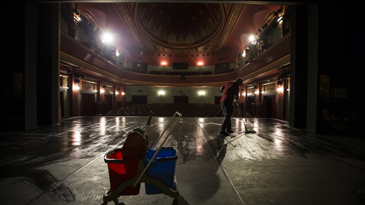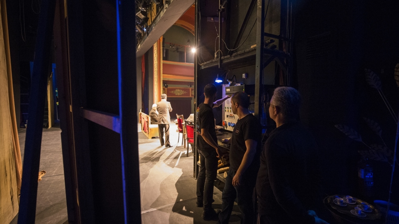 "Perde" dendikten sonra sahnede başarılı performanslar sergileyen tiyatro sanatçılarına, sahne arkasında hünerleriyle sanata katkı sağlayan büyük bir emekçi kadro bulunuyor.