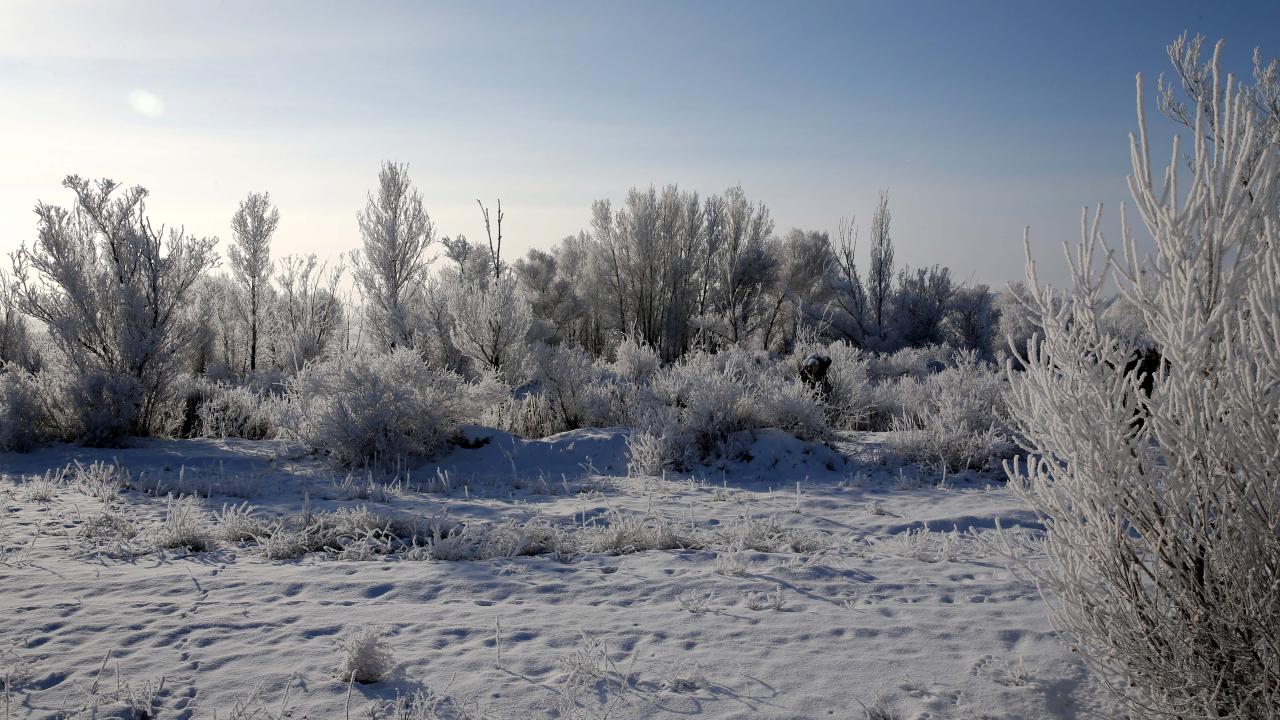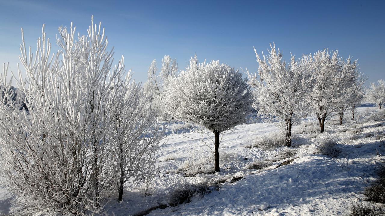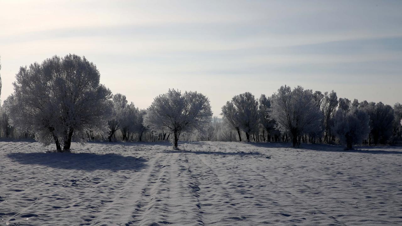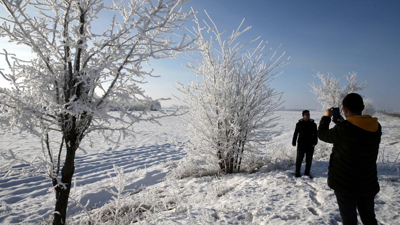 Soğuk havanın etkisiyle bölgedeki ağaçların üzeri de kırağı ile kaplandı.