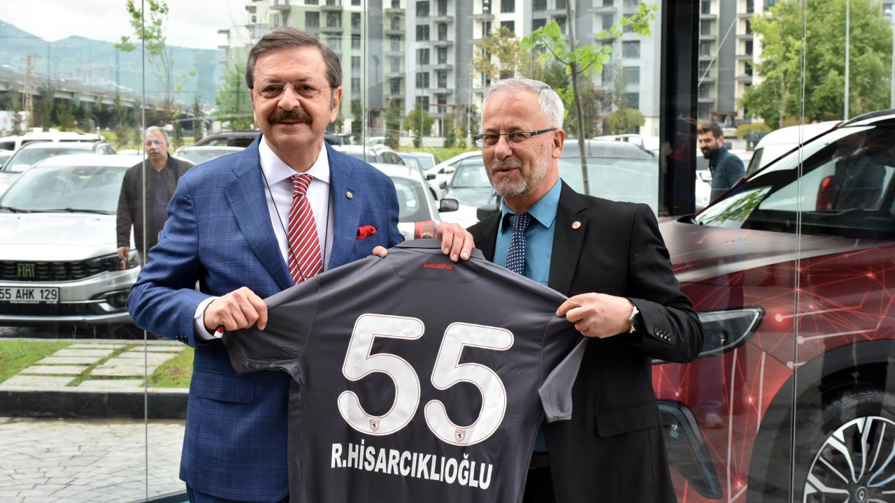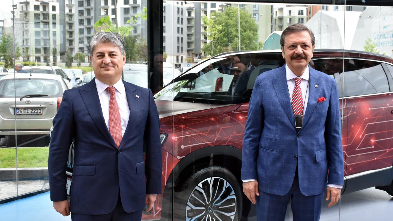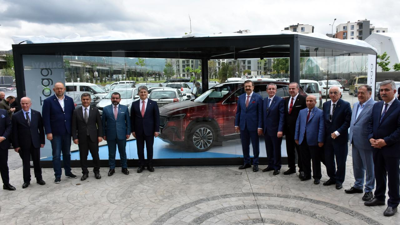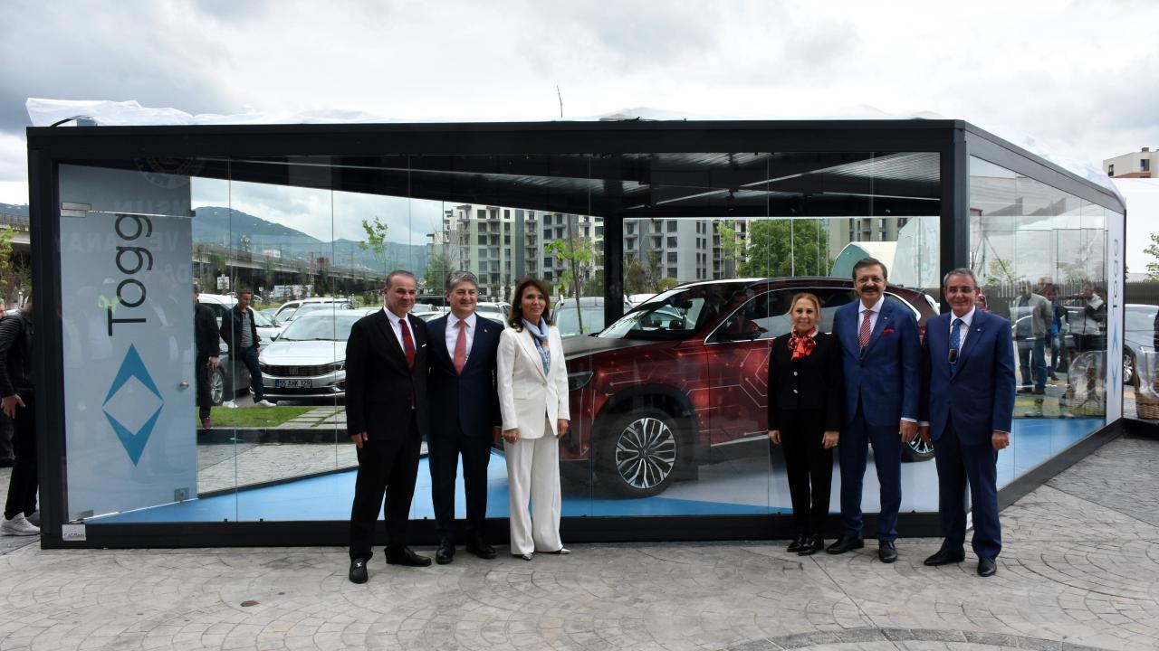 Türkiye Odalar ve Borsalar Birliği (TOBB) Başkanı Rifat Hisarcıklıoğlu, Samsun Ticaret ve Sanayi Odası Yönetim Kurulu Başkanı ve TOBB Başkan Yardımcısı Salih Zeki Murzioğlu ile Togg Üst Yöneticisi (CEO) Mehmet Gürcan Karakaş, aracın yanında vatandaşlar ve basın mensuplarıyla bir araya geldi.