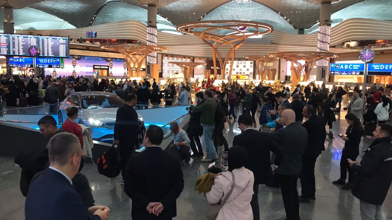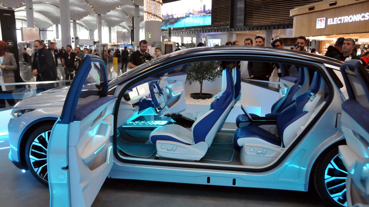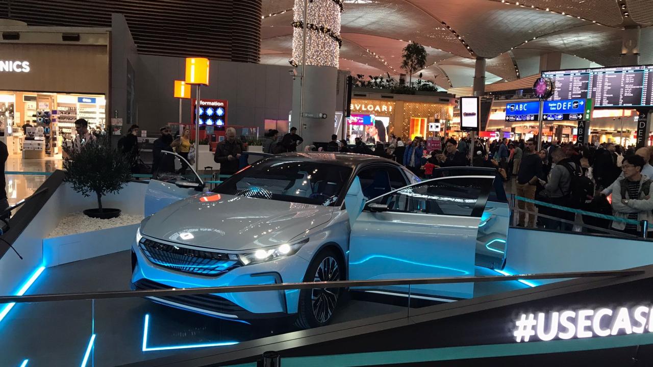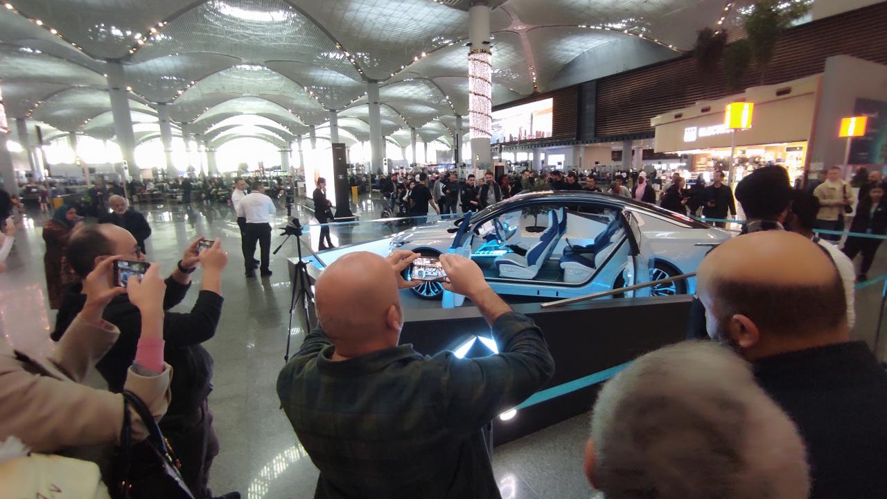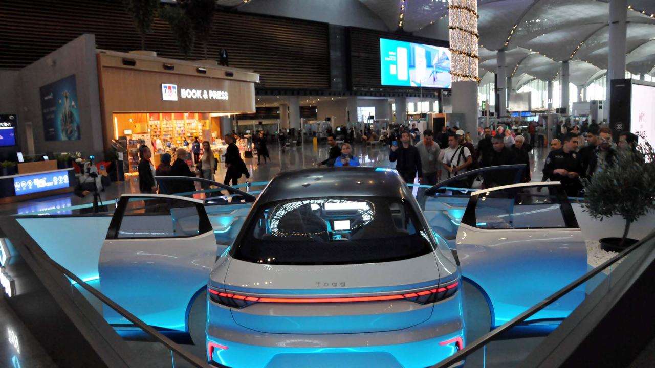 İç ve dış tasarımı ile yolcuların beğenisini kazanan Togg, İstanbul Havalimanı`nda ay sonuna kadar sergilenmeye devam edecek.