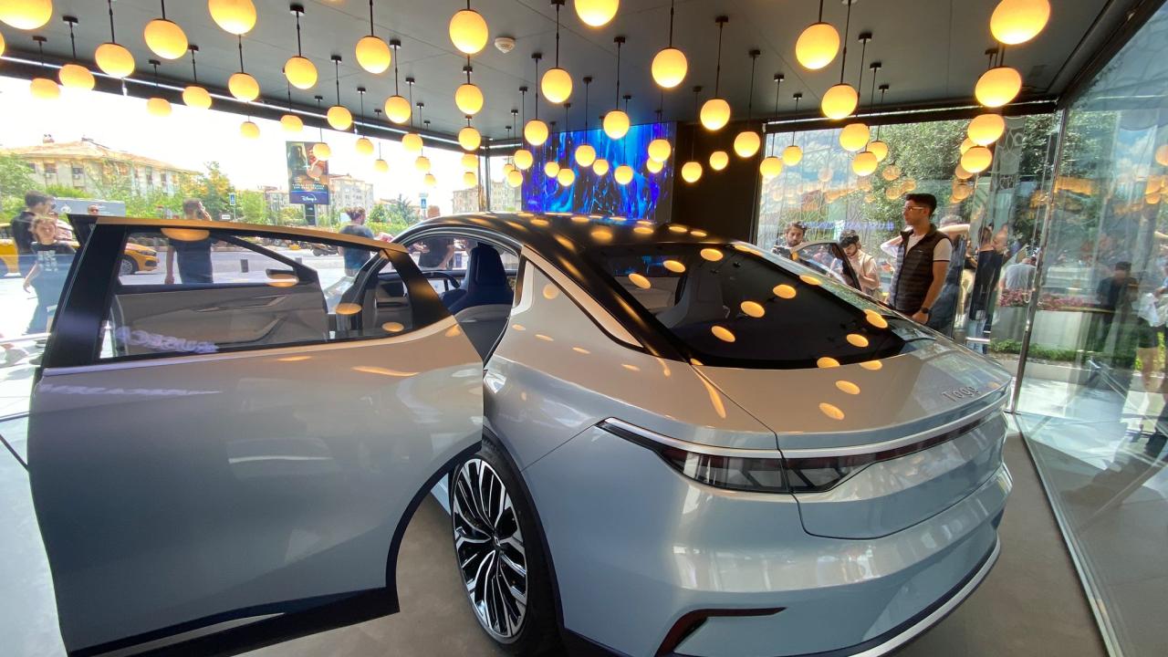 Bu paylaşımların ardından Togg`un Sedan modeli, İstanbul`daki bir alışveriş merkezinde görücüye çıktı.