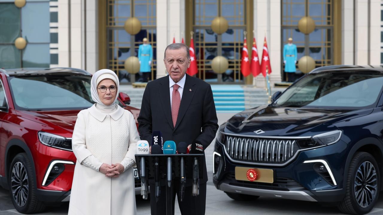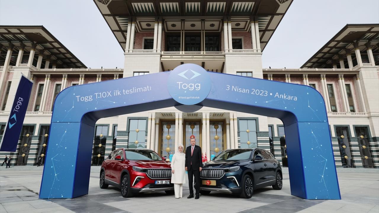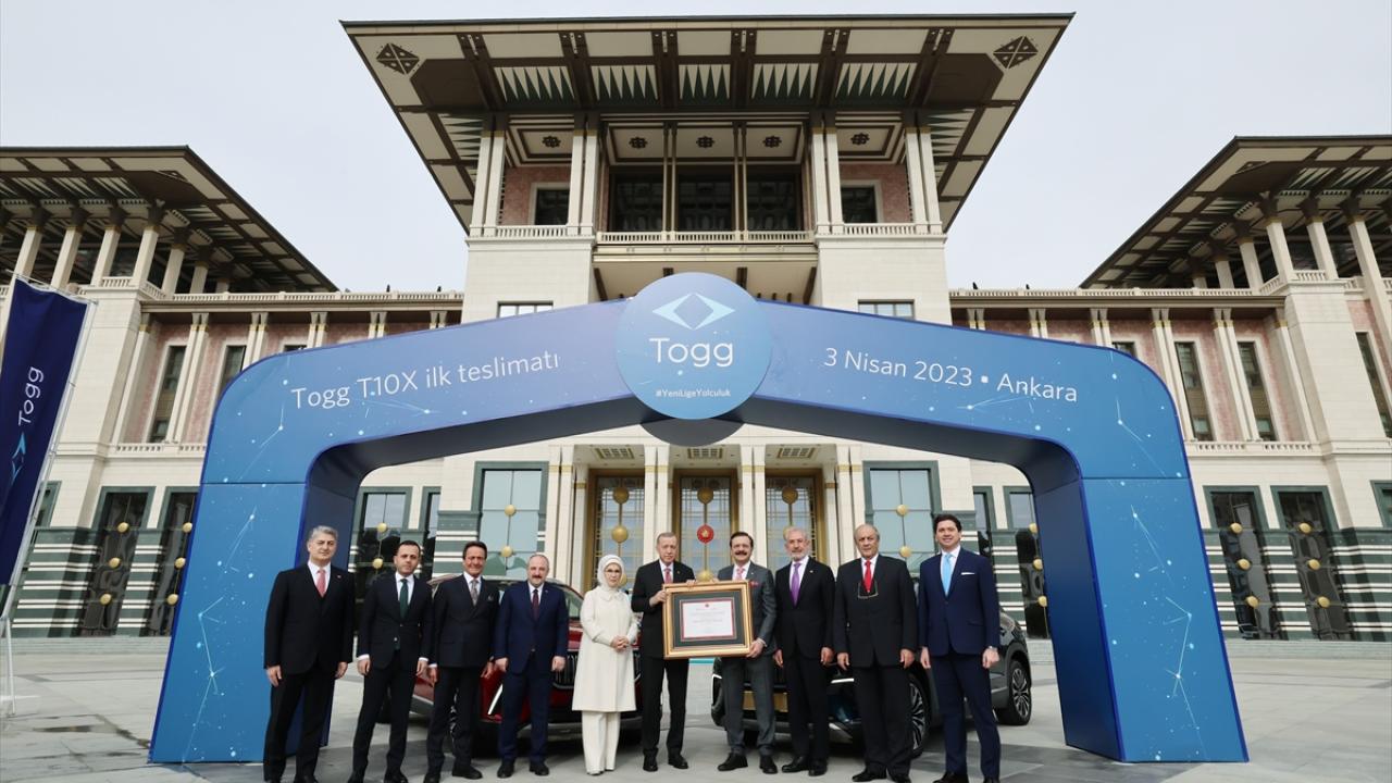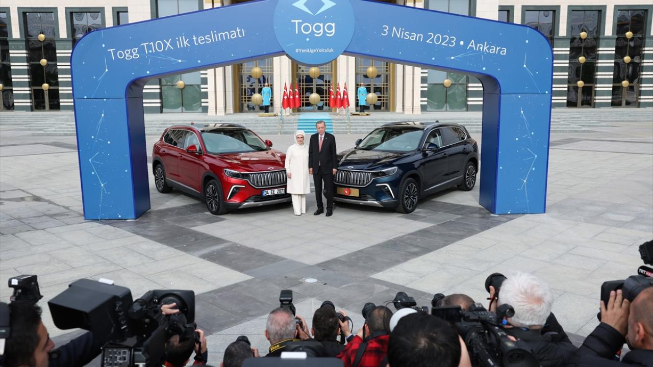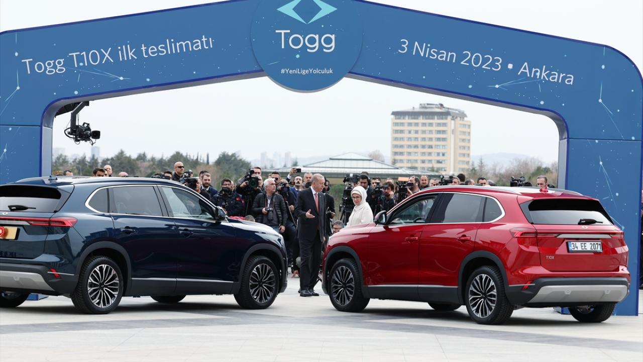 Türkiye'nin otomobili Togg'da, ilk teslimat, ilk siparişi veren Cumhurbaşkanı Recep Tayyip Erdoğan'a yapıldı. Anadolu kırmızısı ve Gemlik yeşili araçları teslim alan Erdoğan, "Türkiye Yüzyılı'nın ilk meyvelerinden Togg hayırlı olsun" dedi.