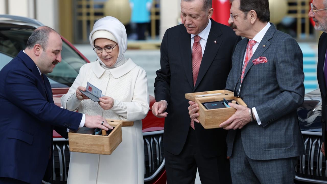 Cumhurbaşkanlığı Külliyesi’nde Cumhurbaşkanı Erdoğan ve eşi Emine Erdoğan’a törenle takdim edilen akıllı cihaz, `Anadolu` renginde oldu. Aracın 34 EE 2071 plakası ise dikkat çekti. Cumhurbaşkanlığı Külliyesi`de makam aracı olarak kullanılmak üzere `Gemlik` renginde ikinci bir Togg da aynı törenle teslim edildi.