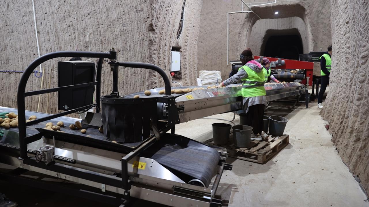Çürümemesi için Nevşehir'de kayadan oyma doğal soğuk hava depolarında muhafaza edilen tohumluk patatesler, çeşitli işlemlerden geçtikten sonra ekim için Türkiye'nin farklı yörelerine sevk ediliyor.