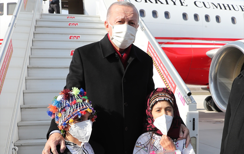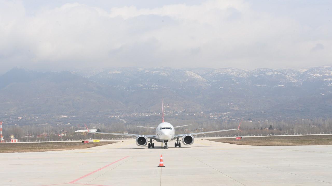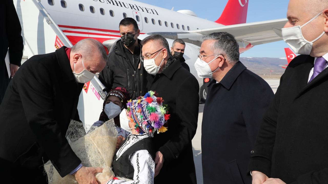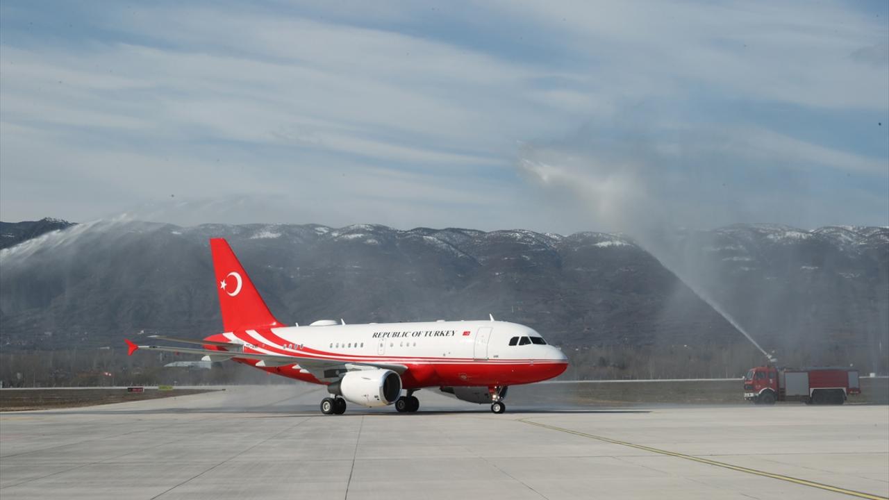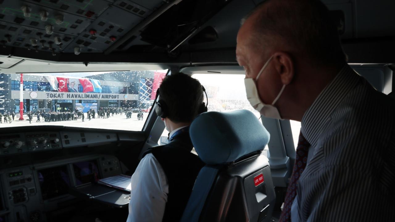 Erdoğan`ı taşıyan uçak, yeni yapılan Tokat Yeni Havalimanı`na indi.