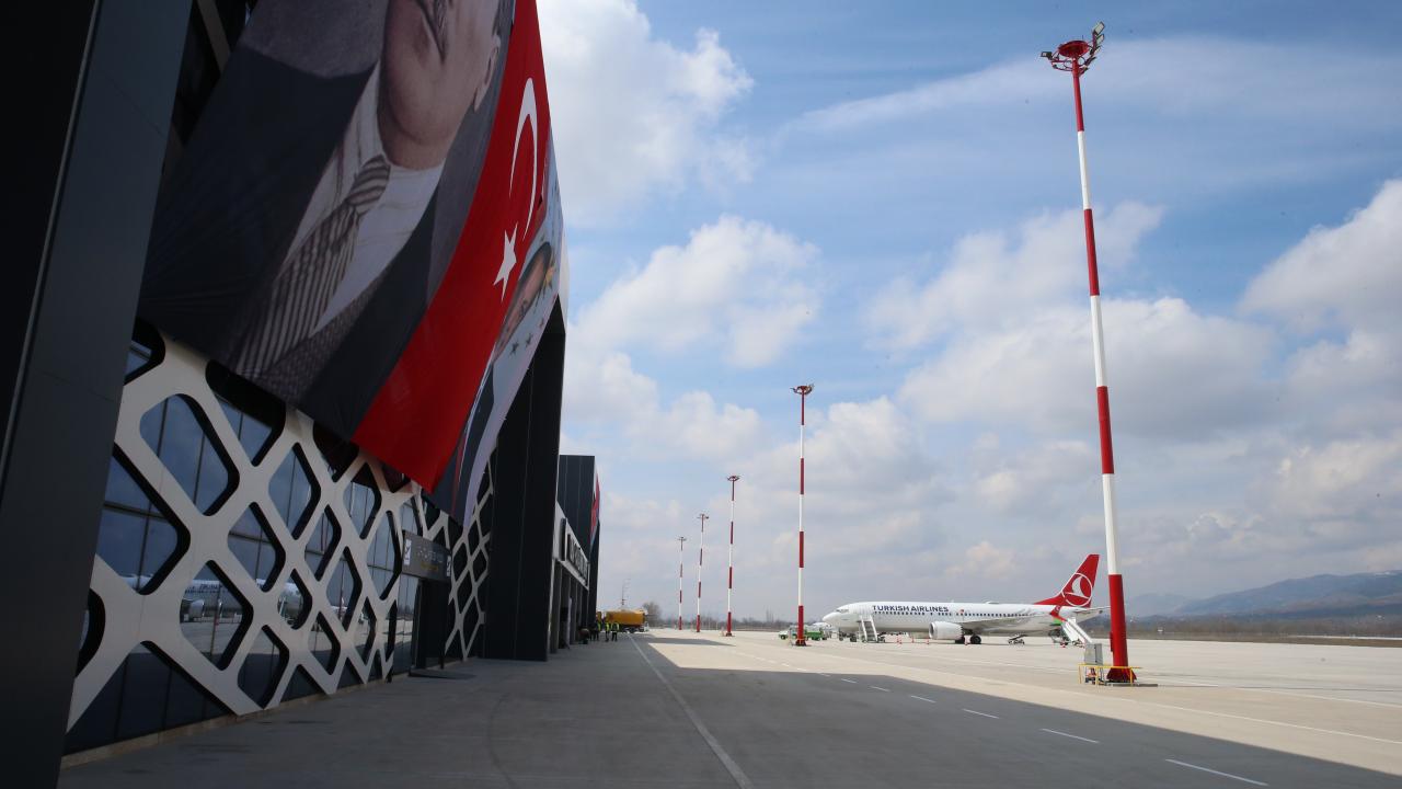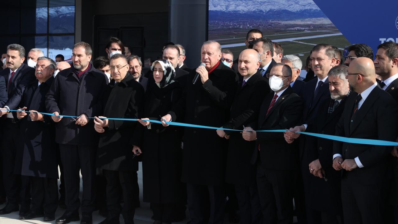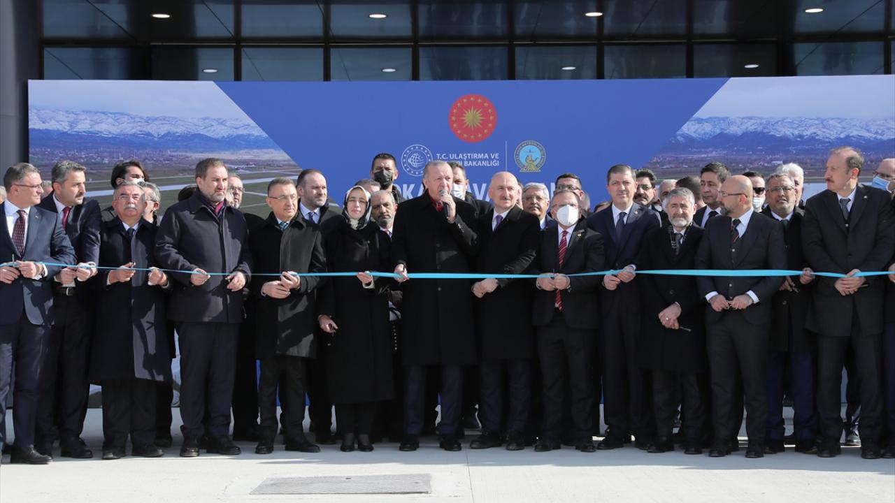 Havalimanına ilişkin yetkililerden bilgi alan Erdoğan, daha sonra beraberindekilerle kurdele keserek havalimanının açılışını gerçekleştirdi.