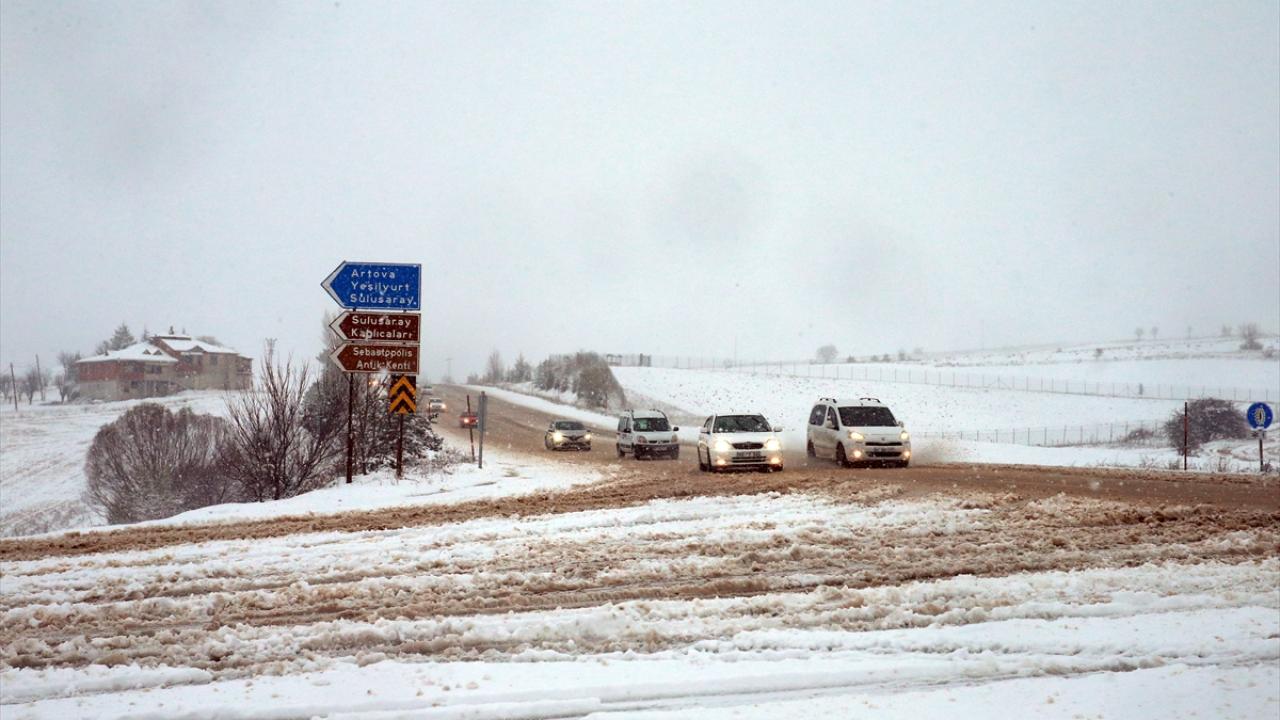 Tokat-Sivas kara yolunda kar ulaşımı aksattı