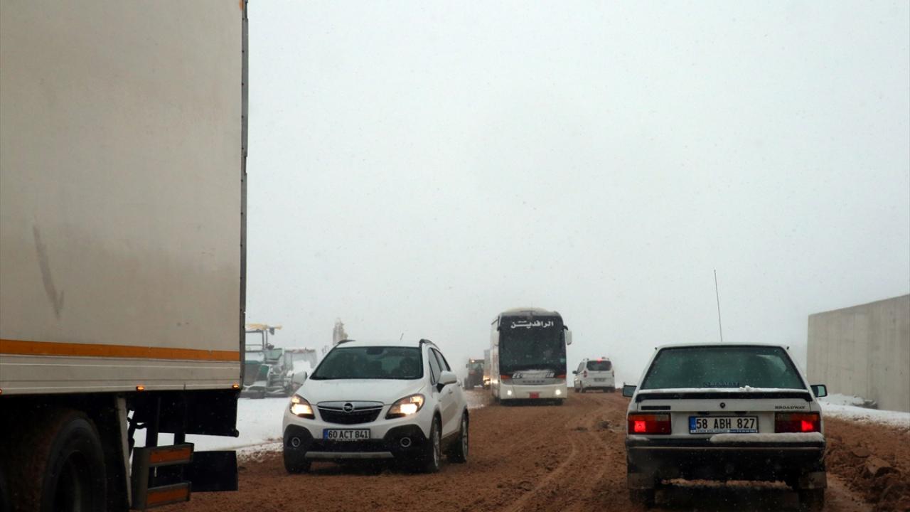 Tokat- Sivas yolunda etkili olan kar nedeniyle araçların sürücüleri, ilerlemekte zorlandı.