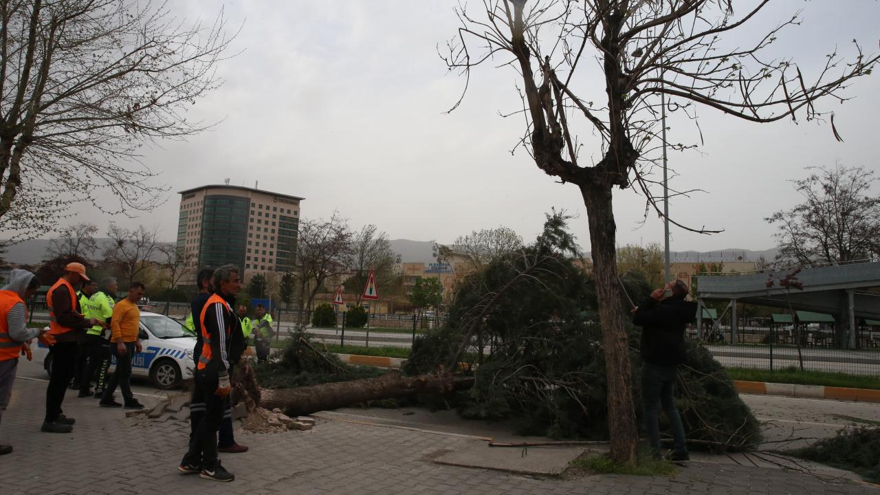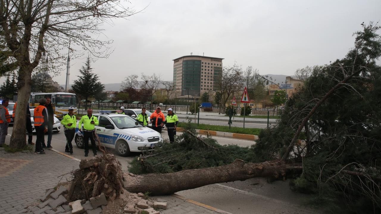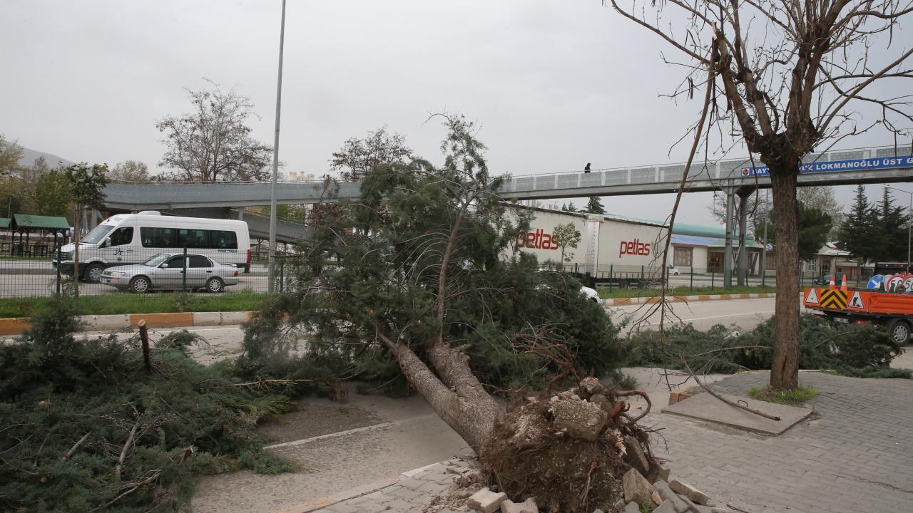 Tokat'ta akşam üstü etkili olan rüzgar nedeniyle Bahçelievler Camii'nin alemi rüzgarda koptu, bazı ağaçlar devrildi.