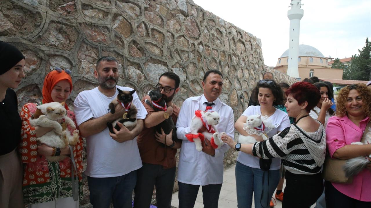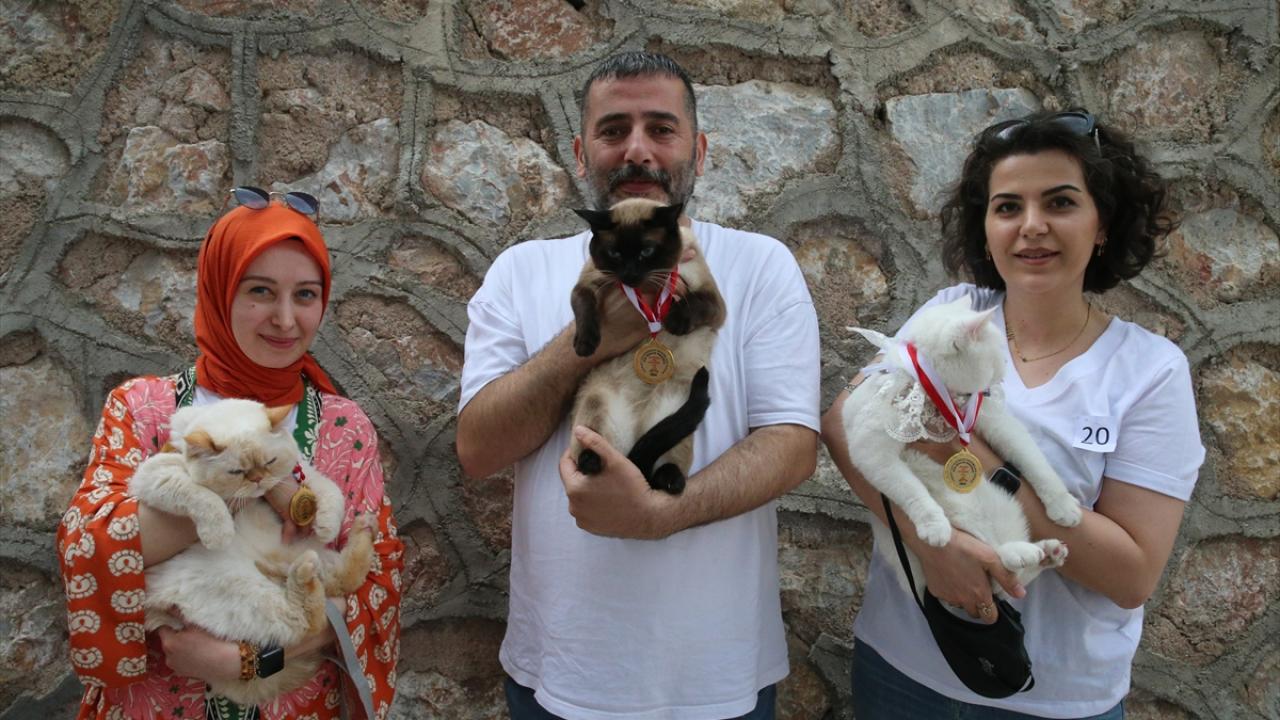 Yarışmada dereceye giren kedilere madalya takıldı.
