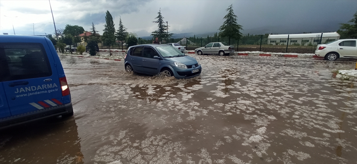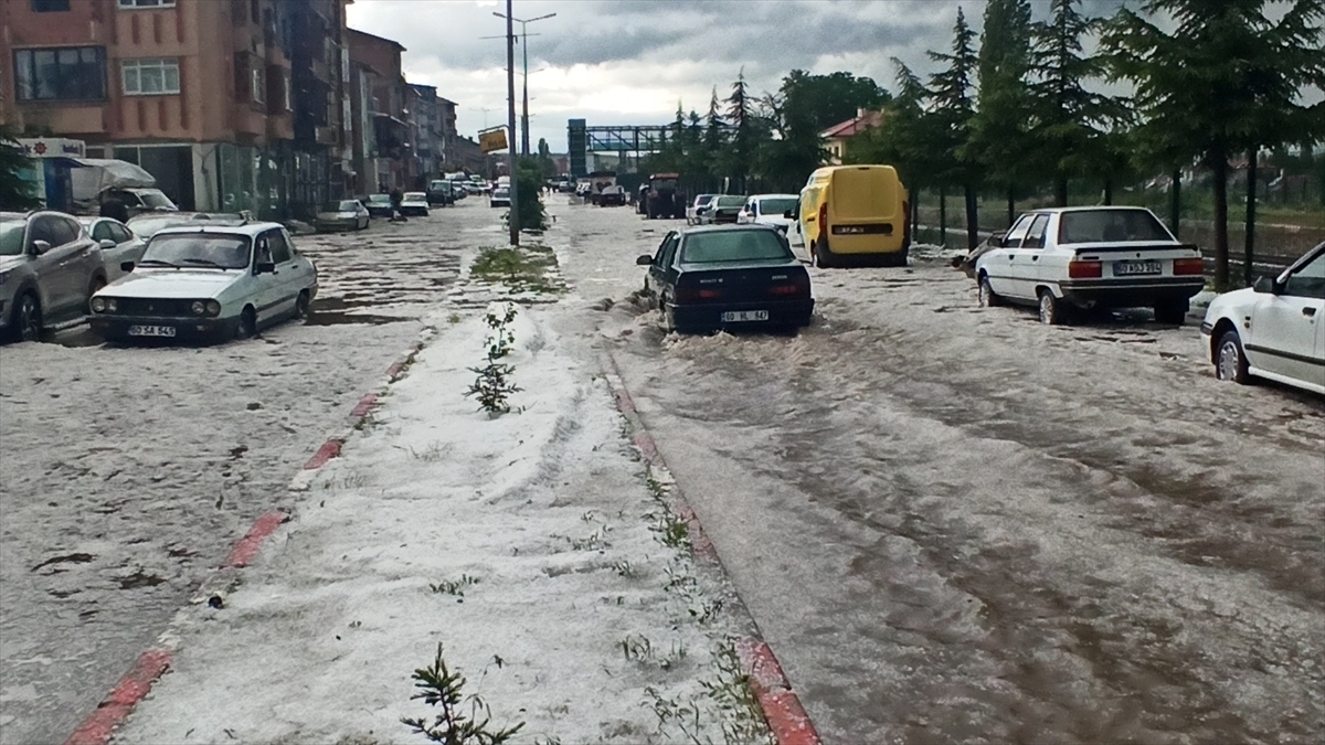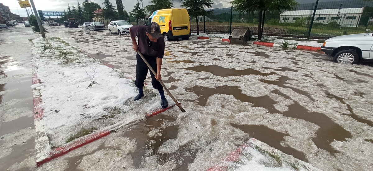 Yeşilyurt ilçesinde de sağanağın ardından dolu yağdı.