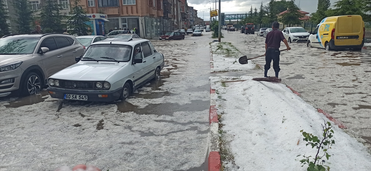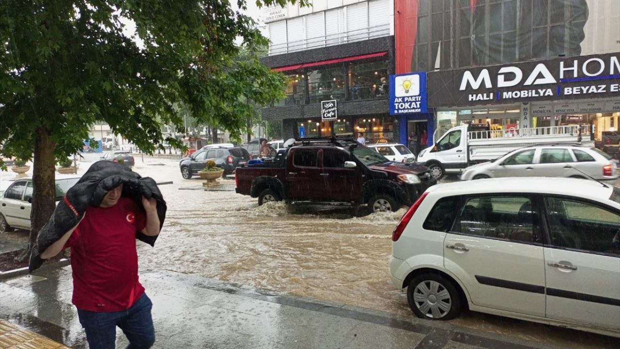 Tokat`ta öğle saatlerinde başlayan ve yaklaşık 20 dakika süren sağanak şehrin ana caddelerinde su birikintileri oluşturdu.