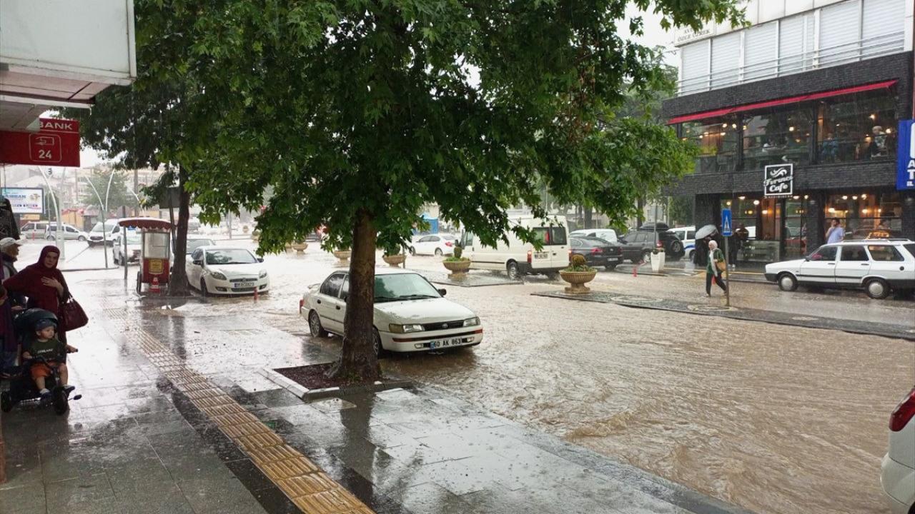 İş yerlerini su basan esnaf, kendi imkanlarıyla suyu tahliye ederken, araçlar yollarda mahsur kaldı.