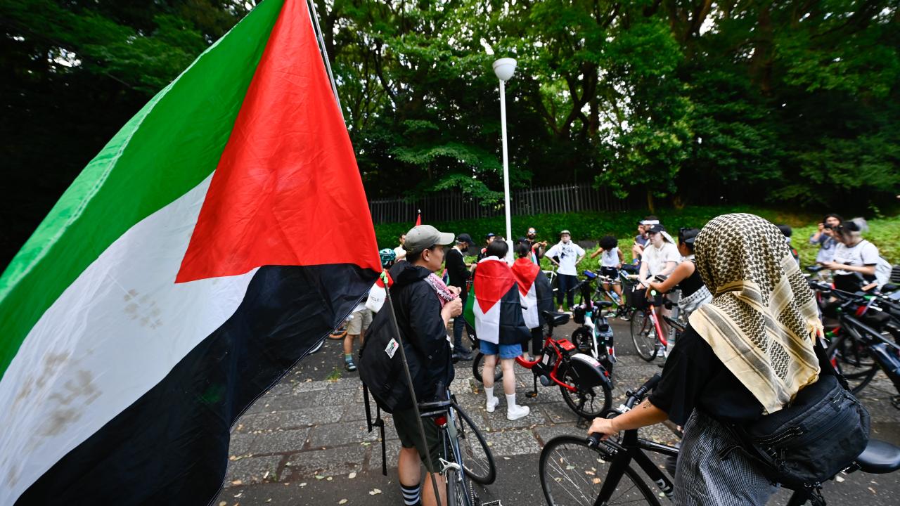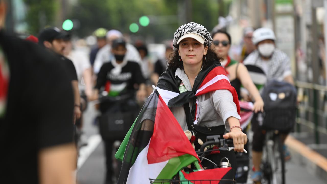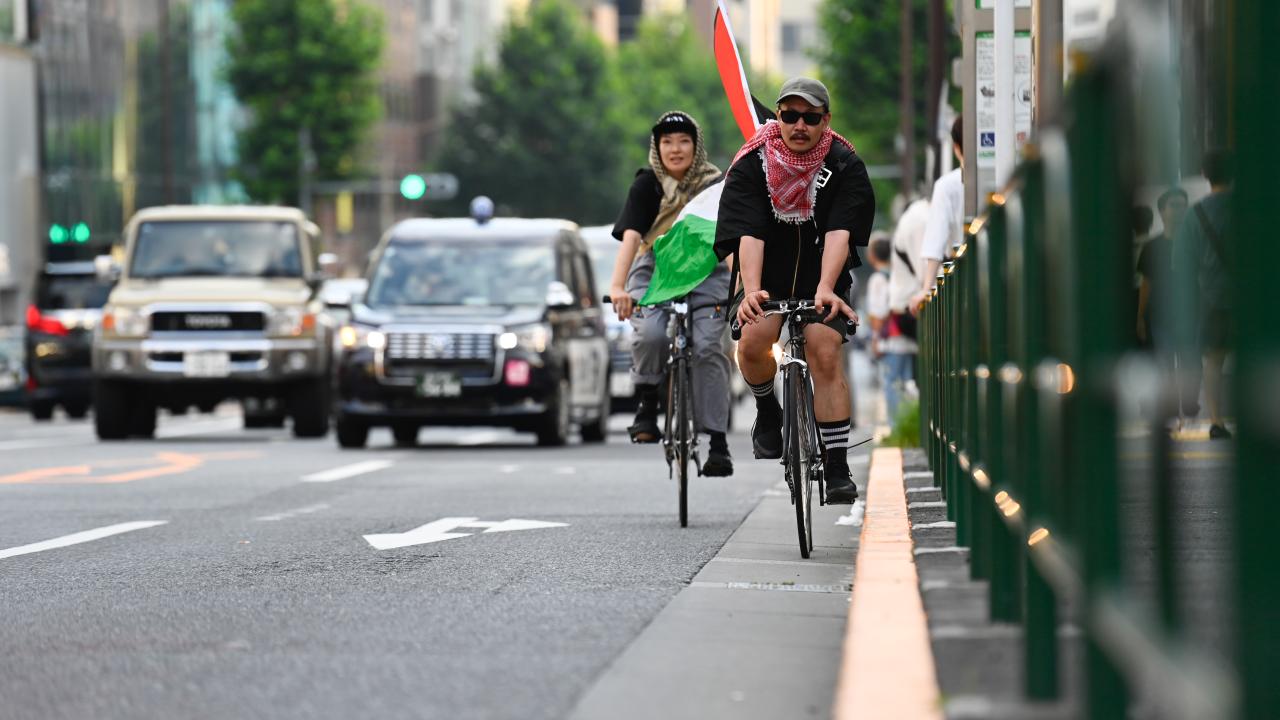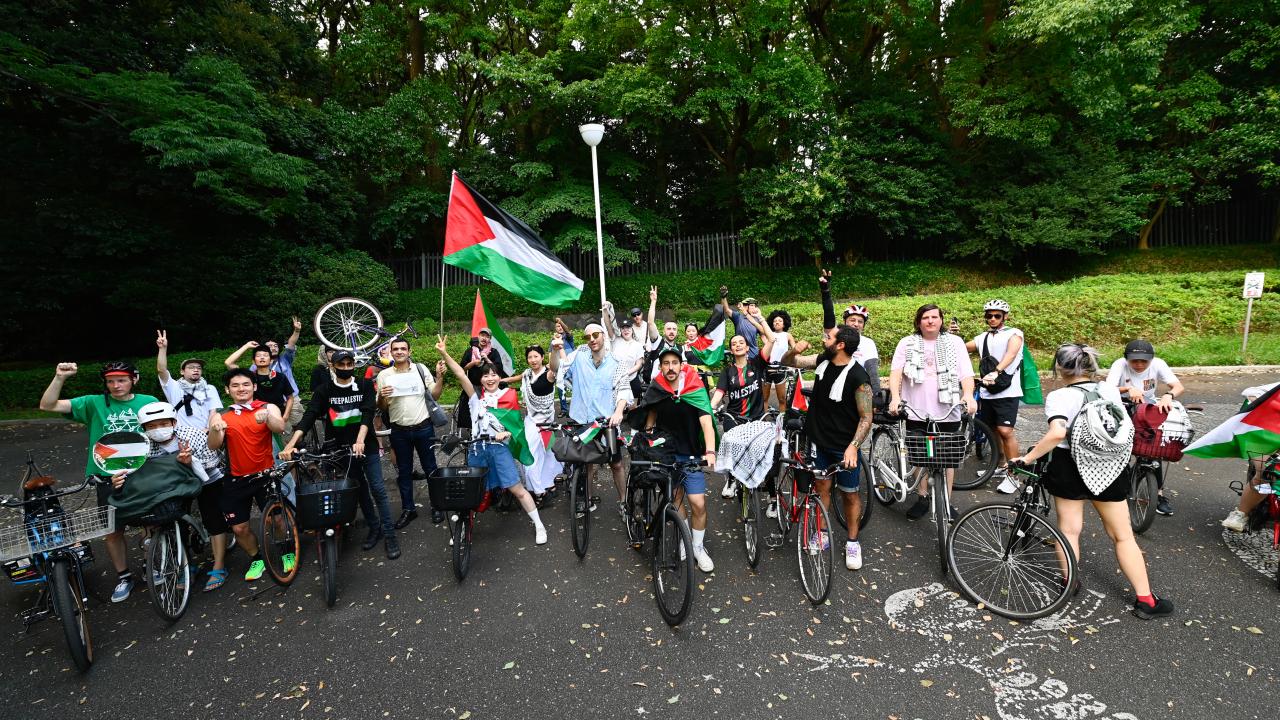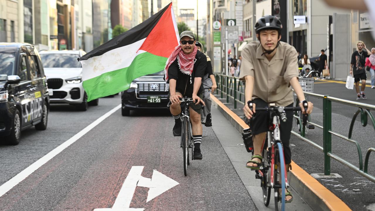 Tokyo'da bisikletçiler İsrail'in Filistin'e yönelik saldırılarını protesto etti