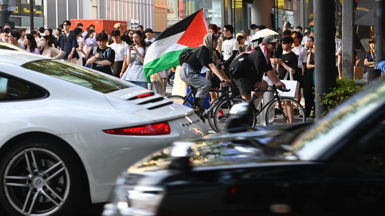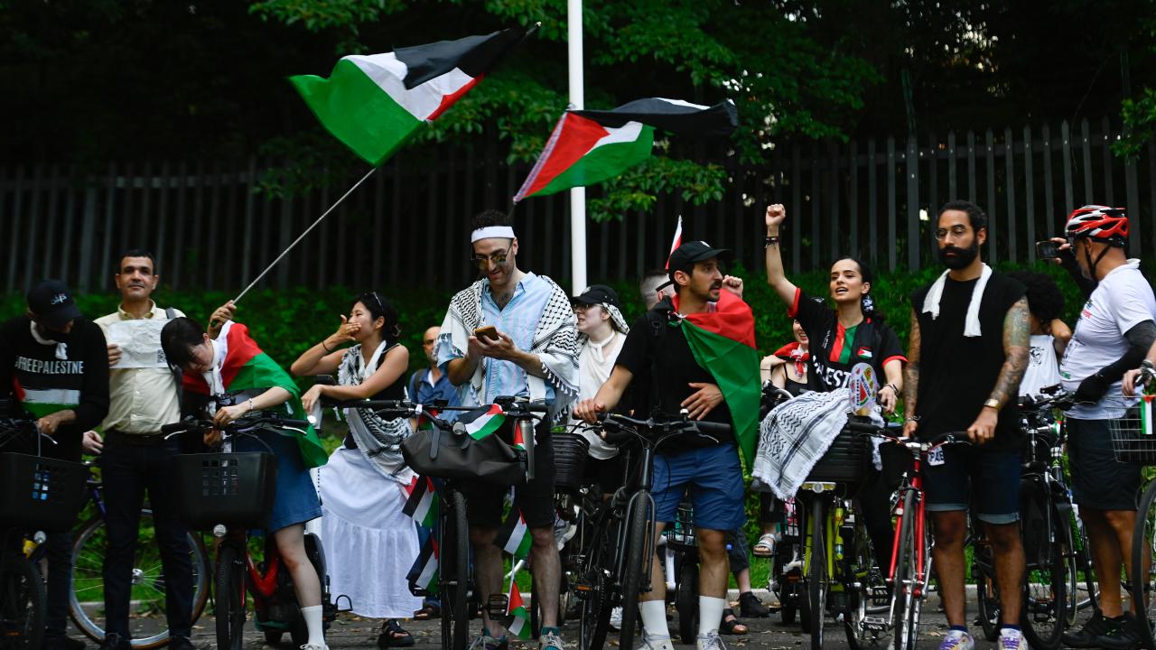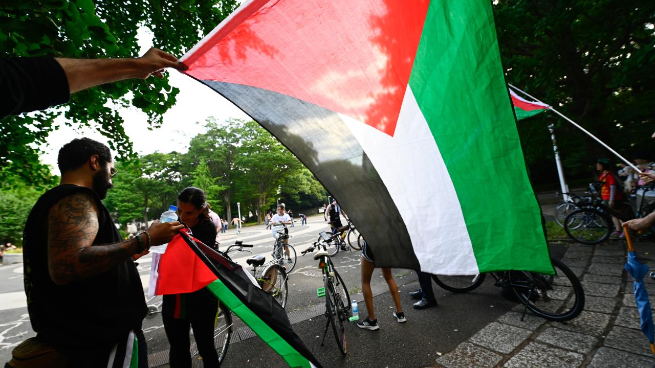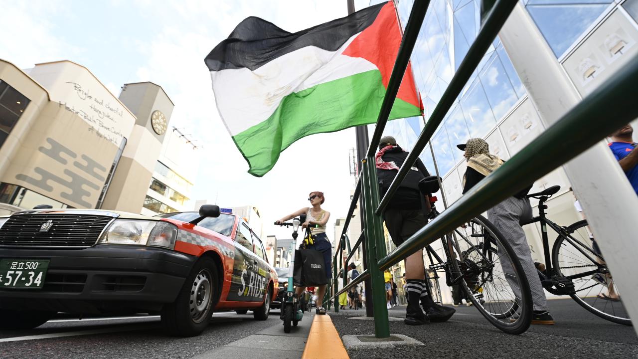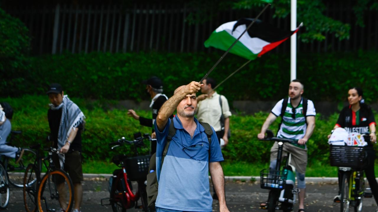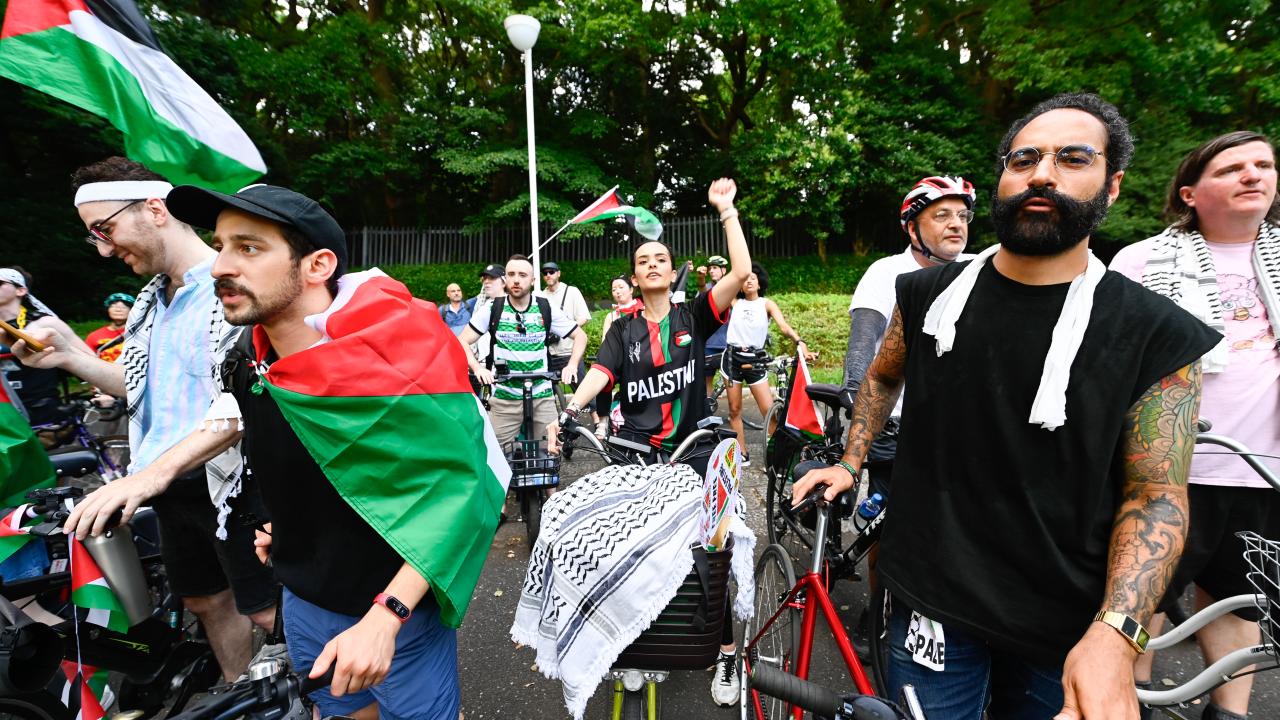Tokyo'da bisikletçiler İsrail'in Filistin'e yönelik saldırılarını protesto etti