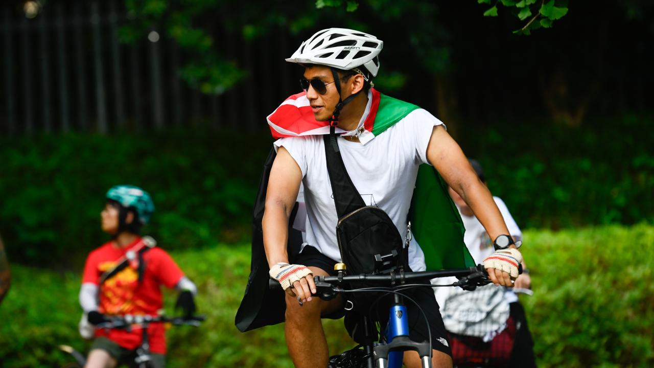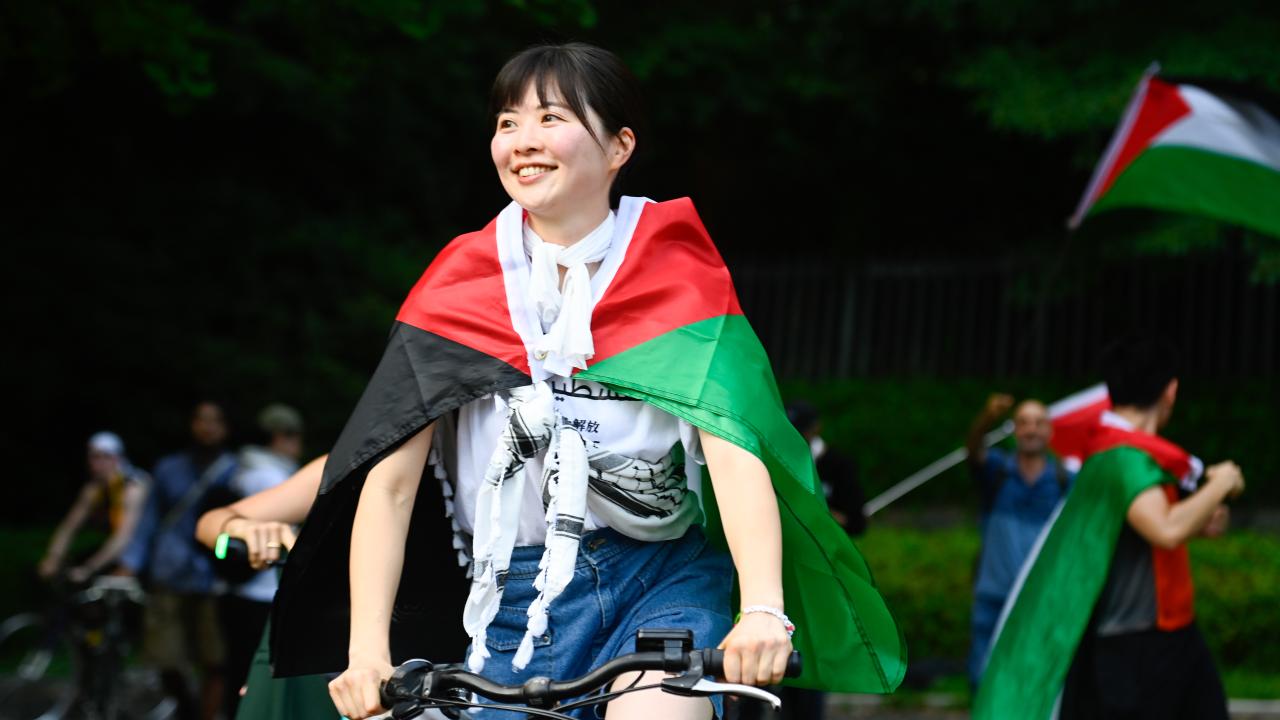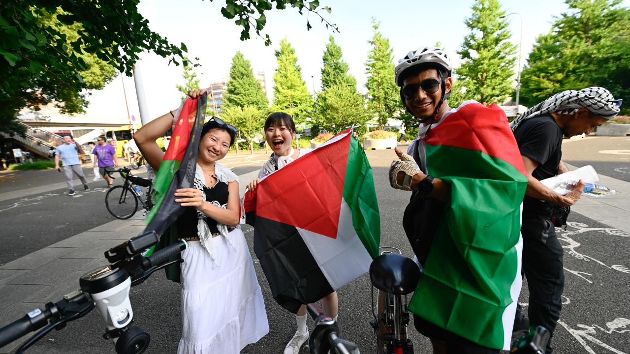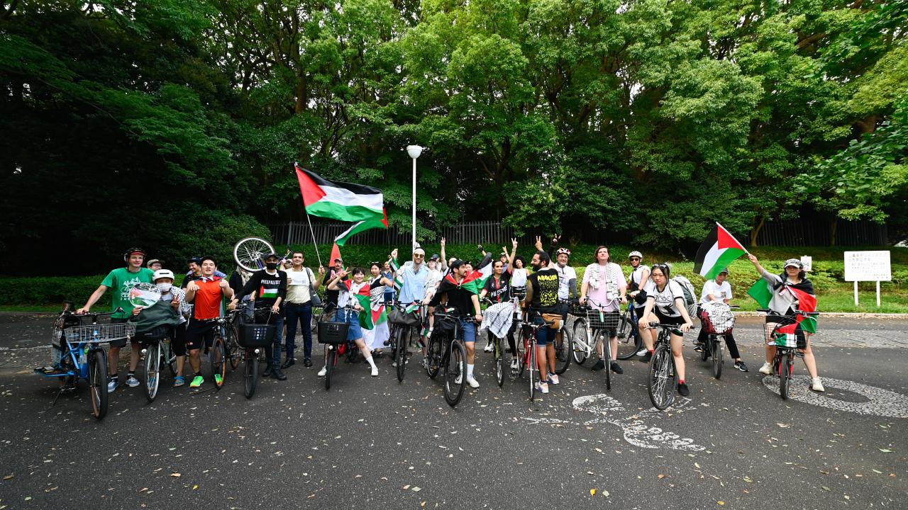 Japonya'nın başkenti Tokyo'da bir araya gelen bisikletçiler, İsrail'in Filistin halkına yönelik devam eden saldırılarını pedal çevirerek protesto etti.