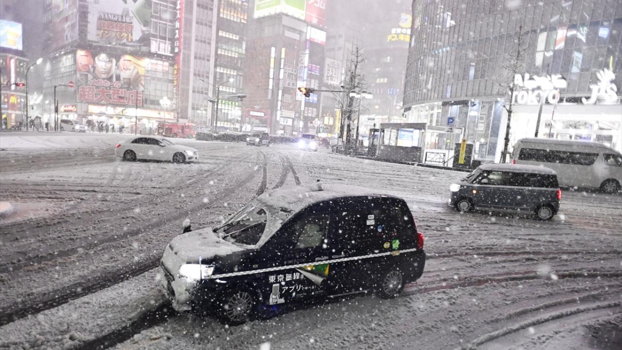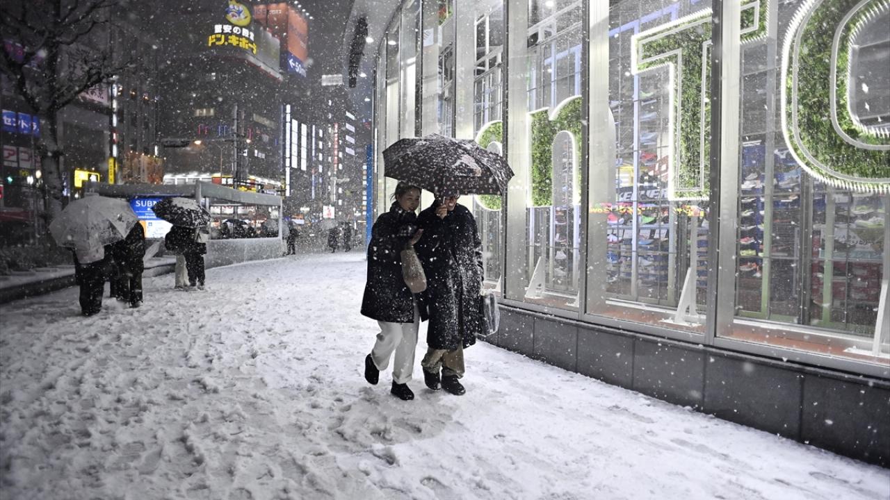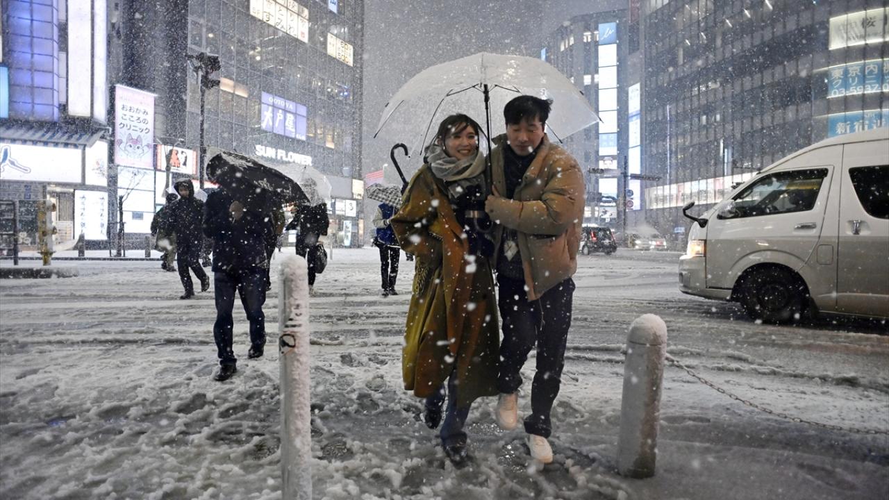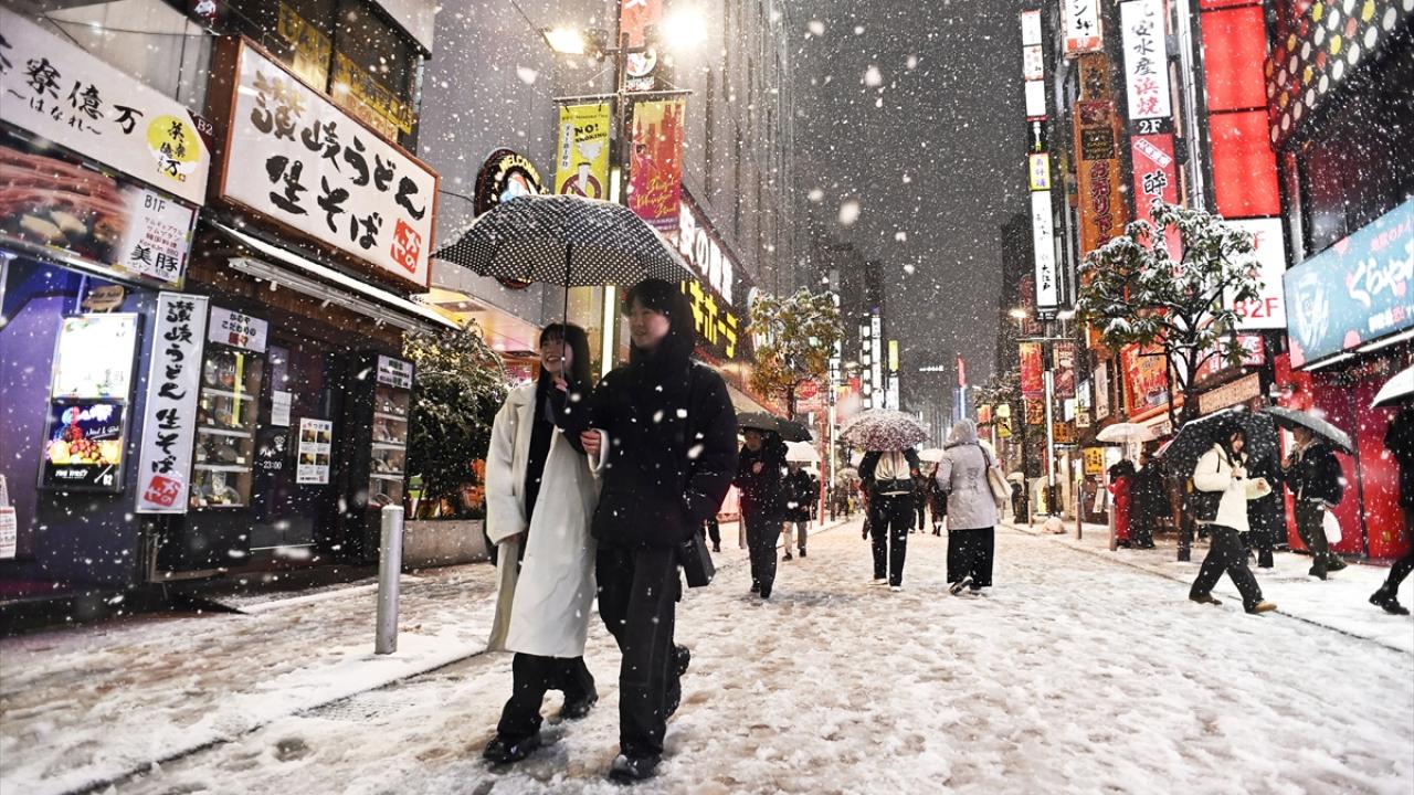 Japonya'nın başkenti Tokyo'da sabah saatlerinde başlayan yılın ilk karı, akşam saatlerinde de yağmaya devam etti.