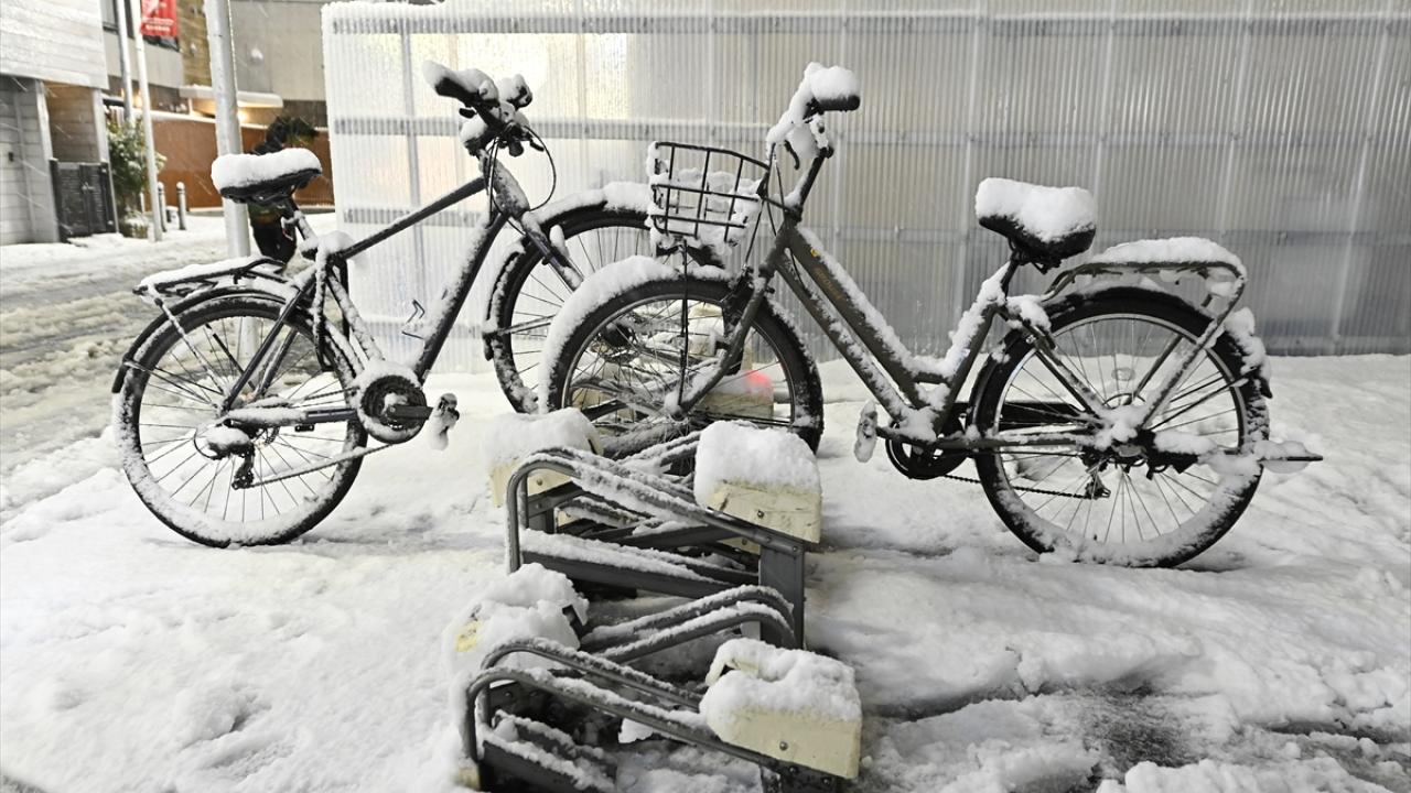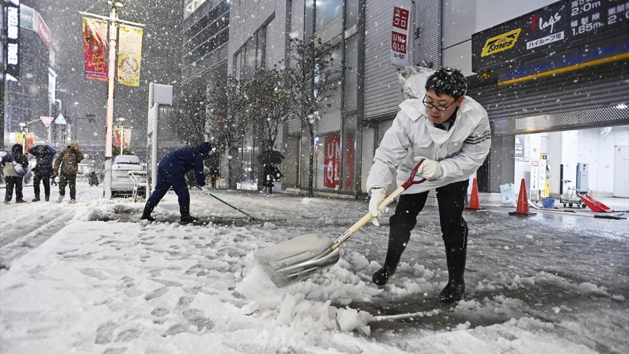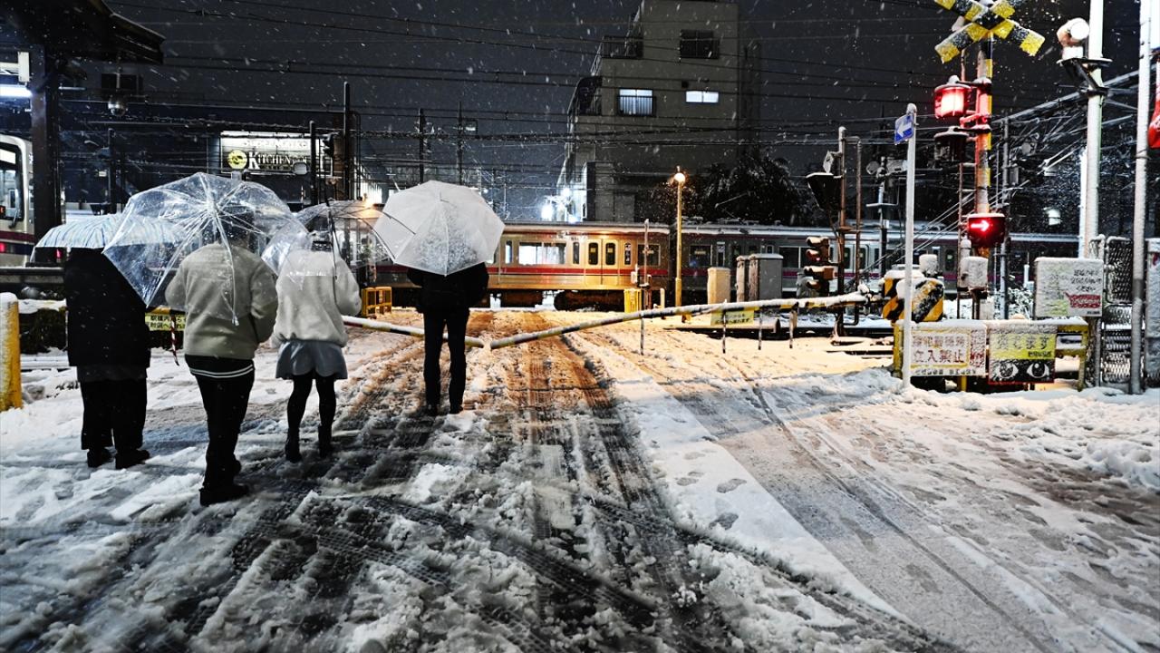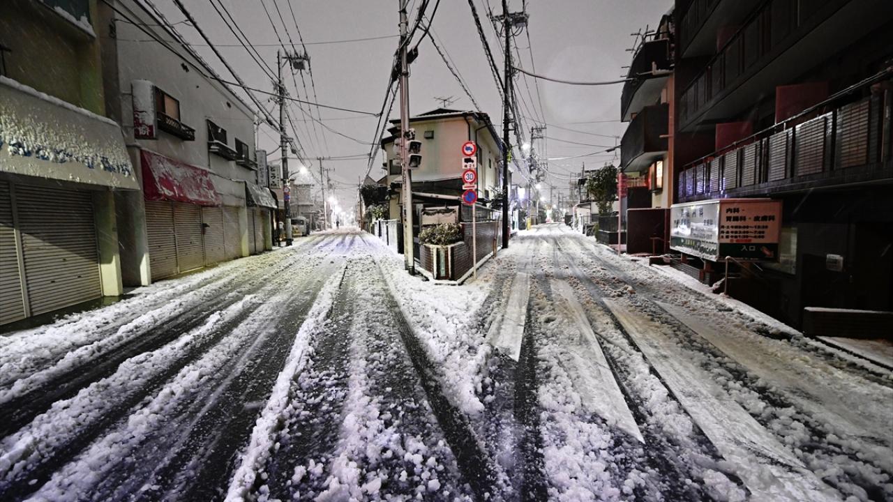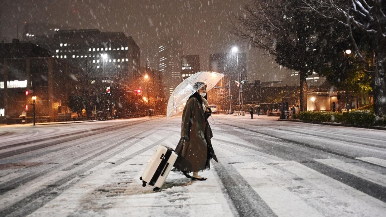 Japonya'nın başkenti Tokyo'da sabah saatlerinde başlayan yılın ilk karı, akşam saatlerinde de yağmaya devam etti.