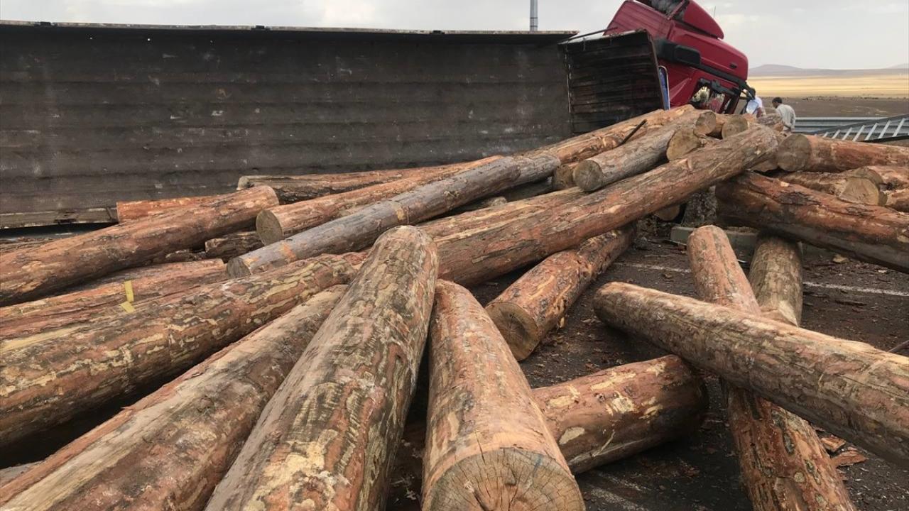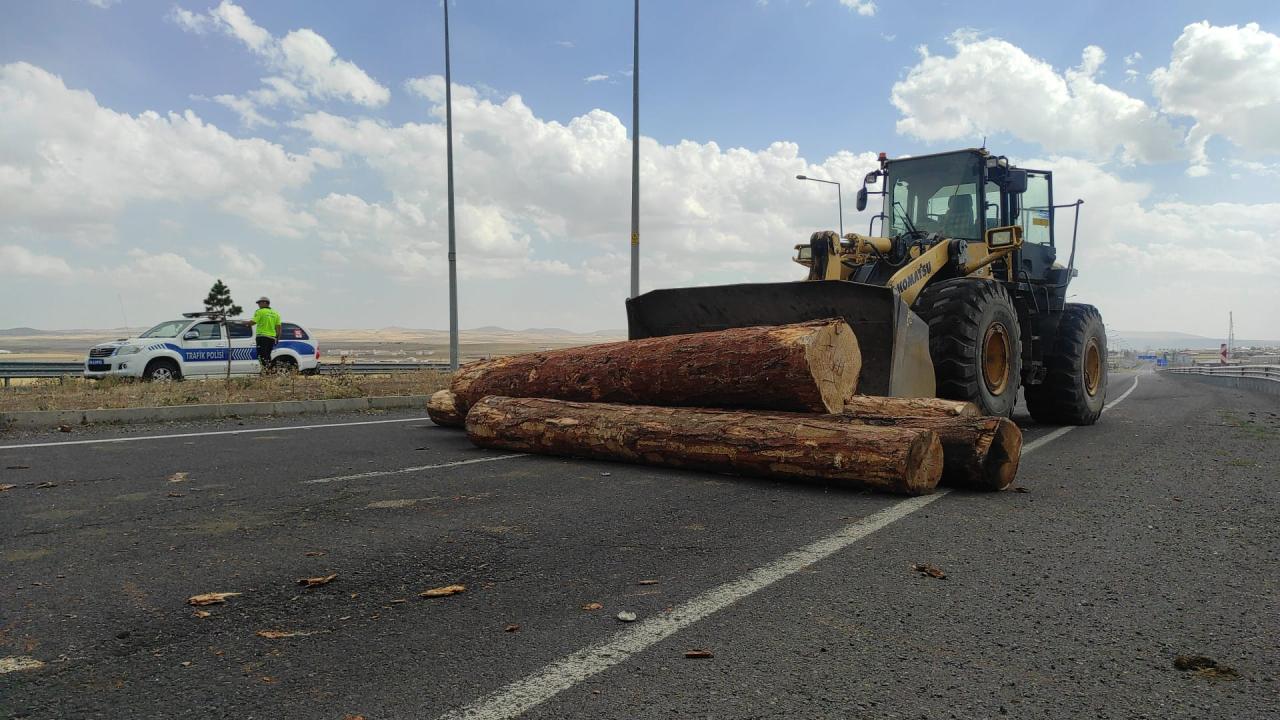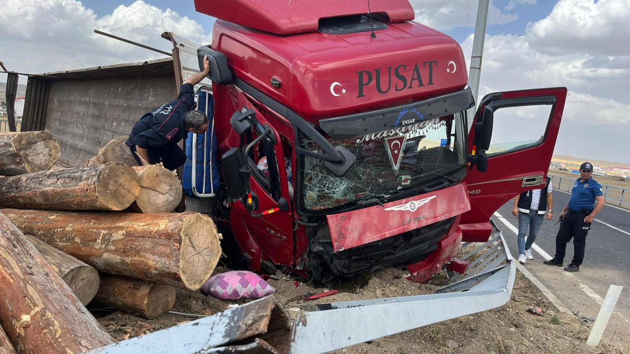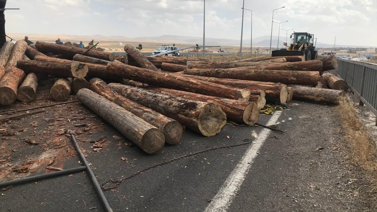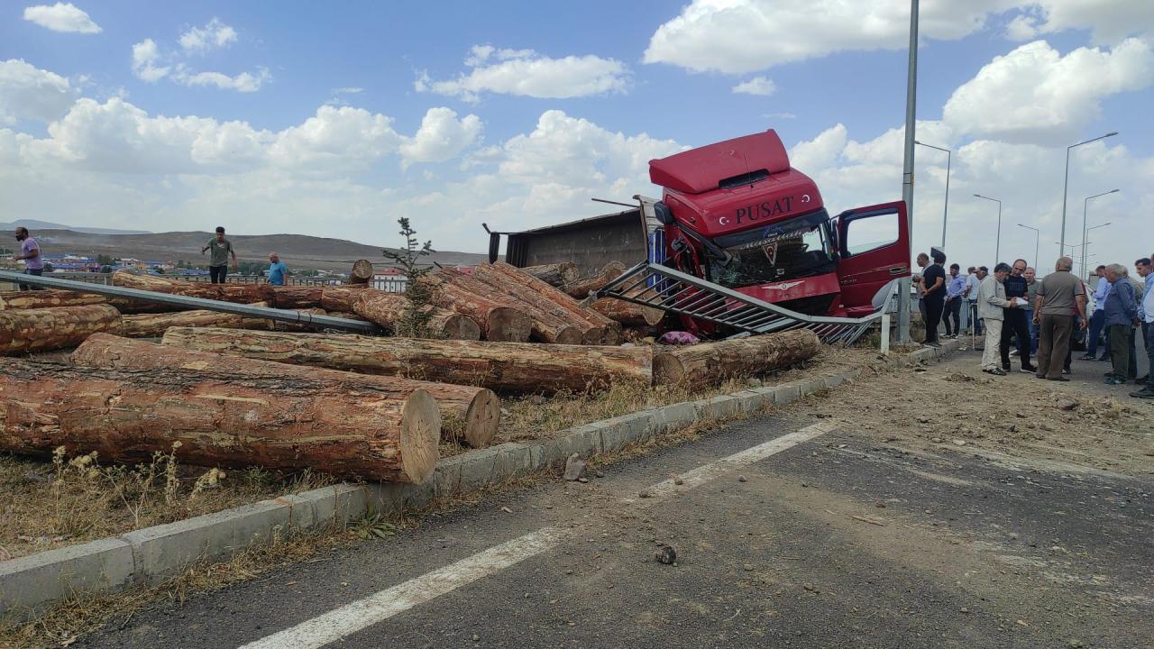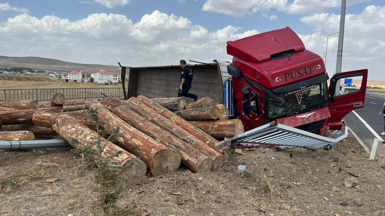 Kaza nedeniyle tomruklar yola savruldu, sürücü tırla köprüden düşme tehlikesi geçirdi.