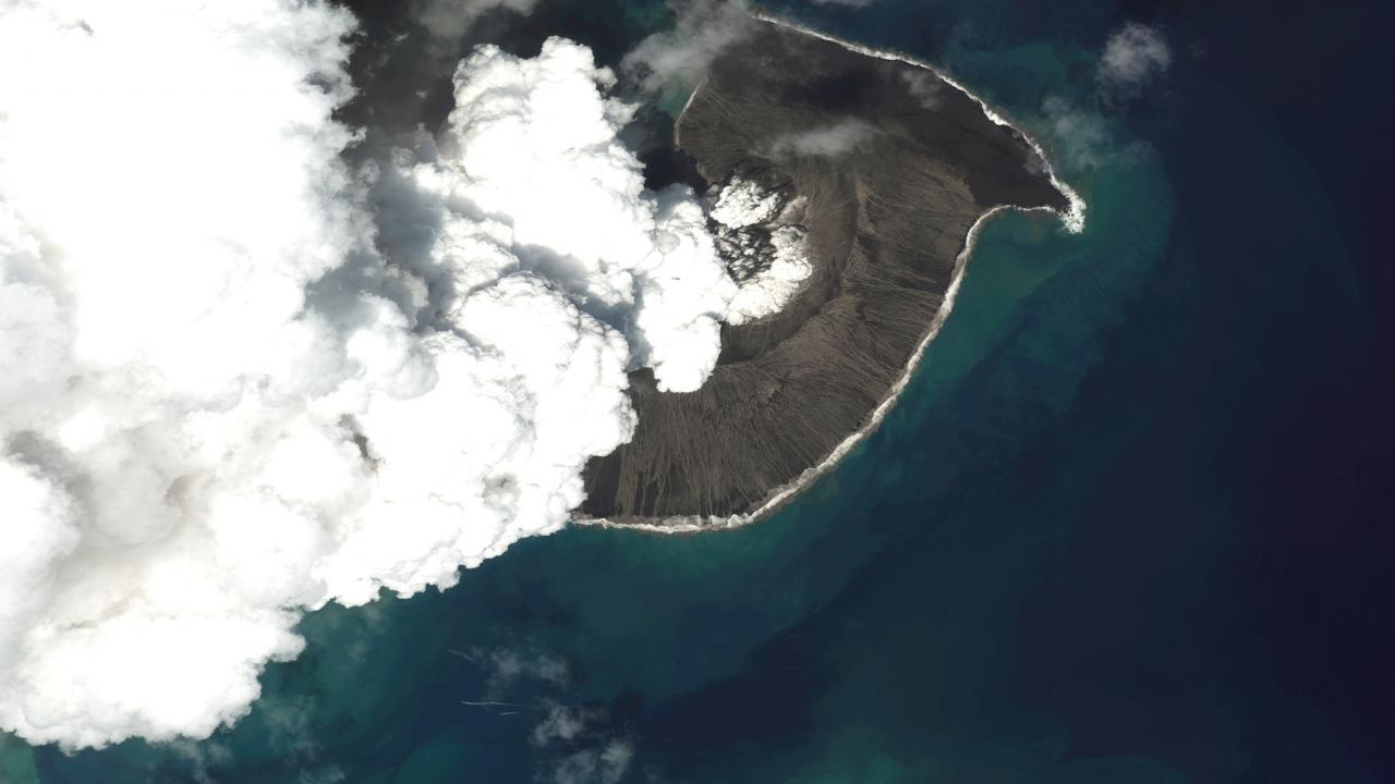 Uydu görüntüleri, Güney Pasifik`in üzerinde dev bir mantar gibi yükselen bir kül, buhar ve gaz bulutundan oluşan devasa patlamayı yakaladı. Yaklaşık 80 santimetrelik tsunami dalgaları Tonga`nın kıyı şeridine çarptı ve Pasifik`i geçerek Santa Cruz ve California`ya küçük hasarlar verdi.