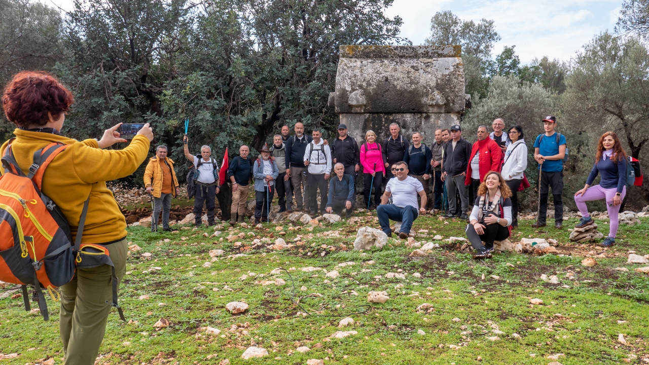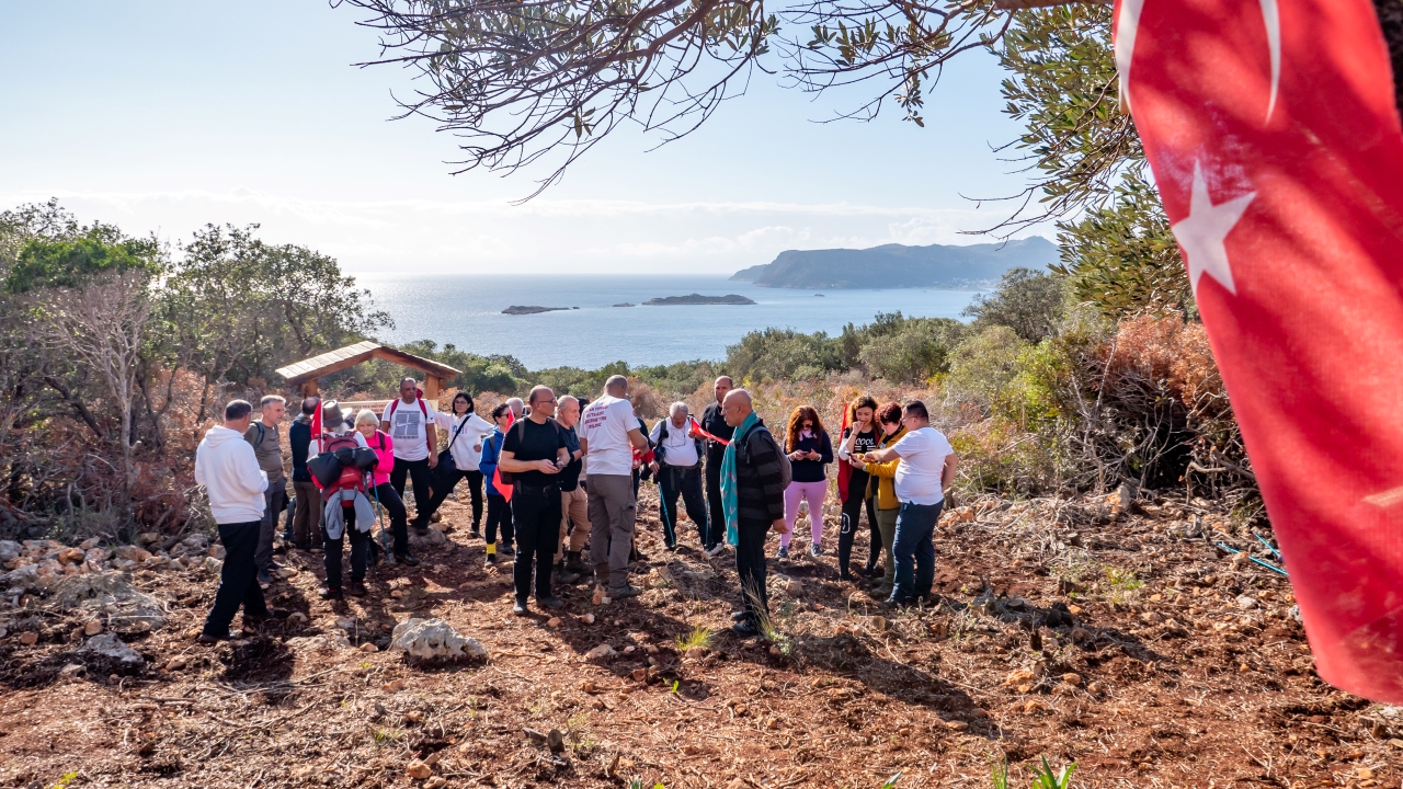 Parkurun değişik noktalarında tarihi süreç hakkında bilgilendirilen yürüyüşçülere Kaş`ın tarihi ve doğal güzellikleri de eşlik etti.