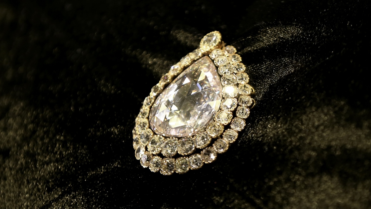 Tüm dikkatleri üzerine çeken, etrafı 49 adet iri pırlantayla çevrili "Kaşıkçı Elması", sergiye açıldığından bugüne yoğun ilgiyle karşılandı.