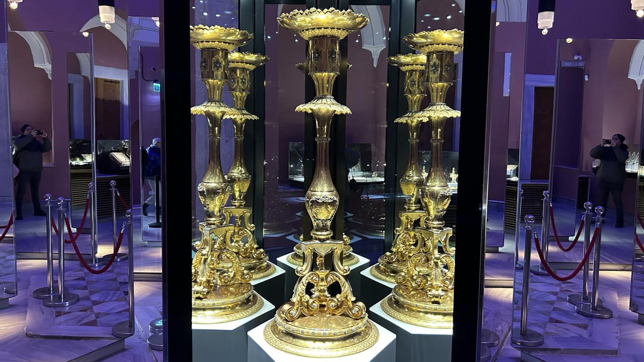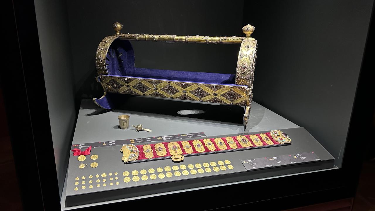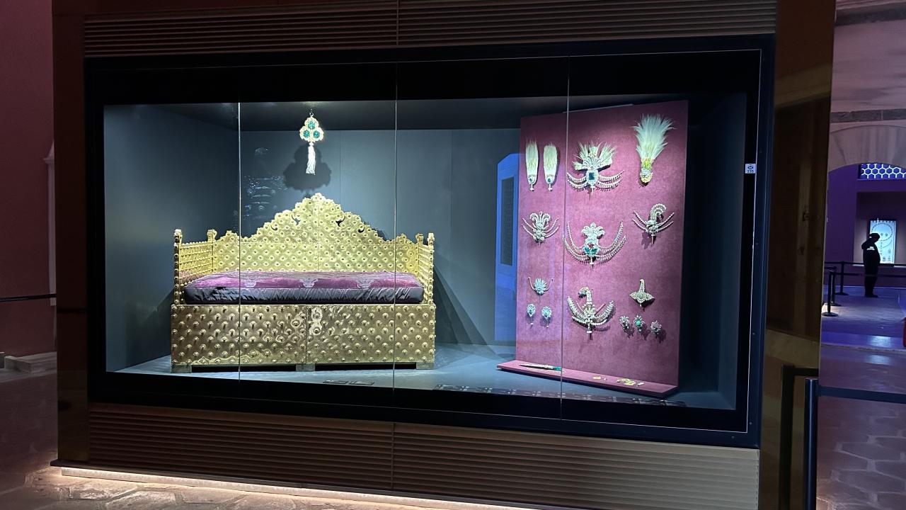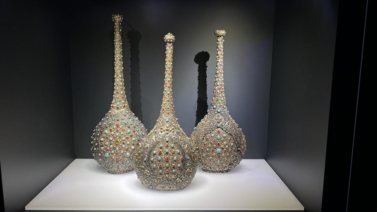 Hazinede altın ve gümüşten kap kacaklar, ipek halılar, seccadeler, kürkler, mücevherli elbise ve kaftanlar, pırlanta, elmas, inci, firuze, yakut ve zümrütten imal edilen mücevherat ile sorguç, eyer takımı, kemer gibi eşyalar yer alıyor.