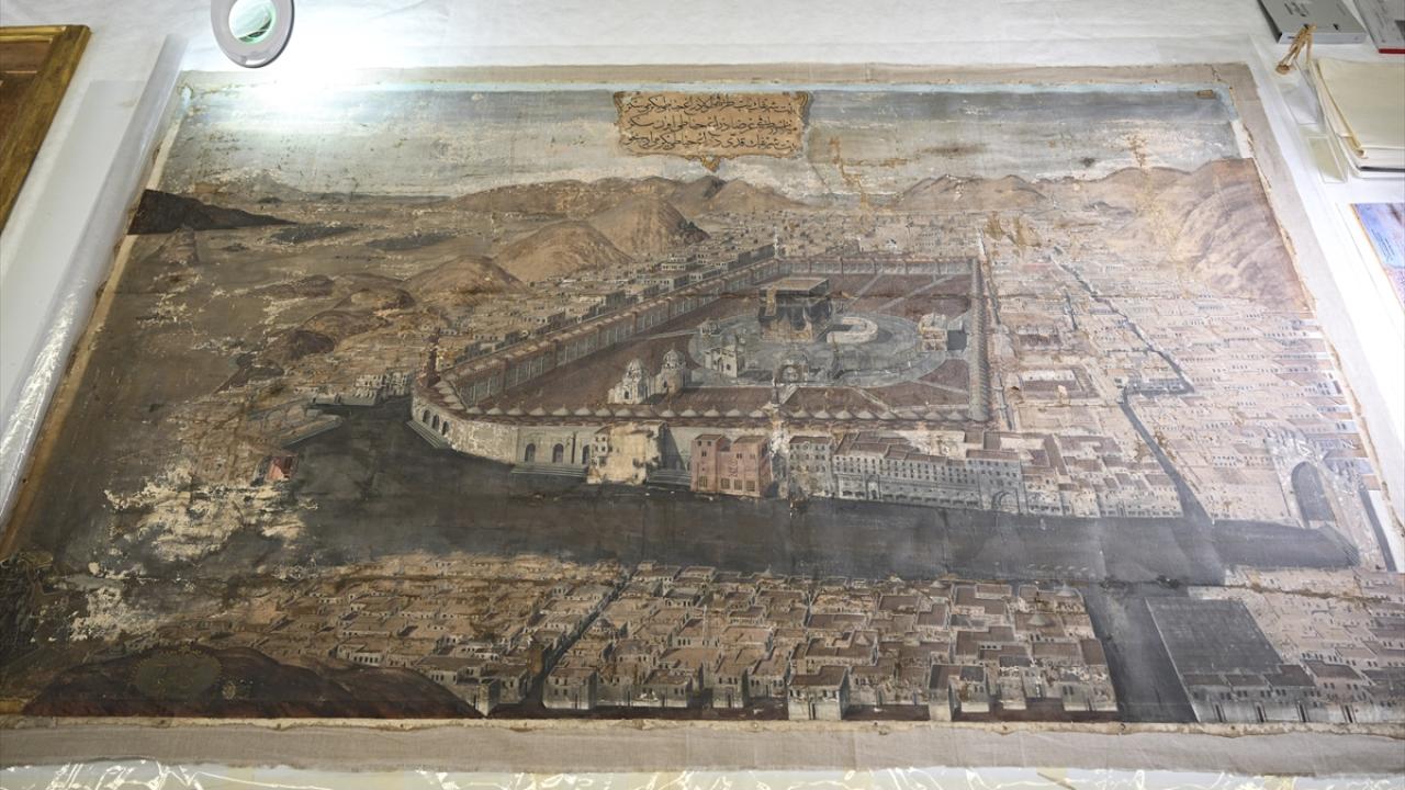 Restorasyonu yapılan 1799 tarihli Mekke temalı tabloda, Kabe ve çevresi en ince ayrıntısına kadar resmedildi. Yaklaşık 4,5 metrekare ebadındaki tablo, Mescid-i Haram`ın içindeki ve dışındaki yapıları hem çizim hem de yazıyla destekleyerek göstermesi bakımından ayrı bir önem taşıyor.