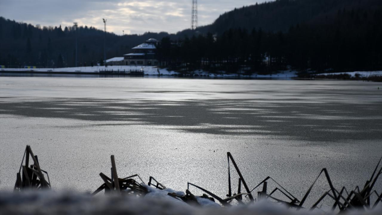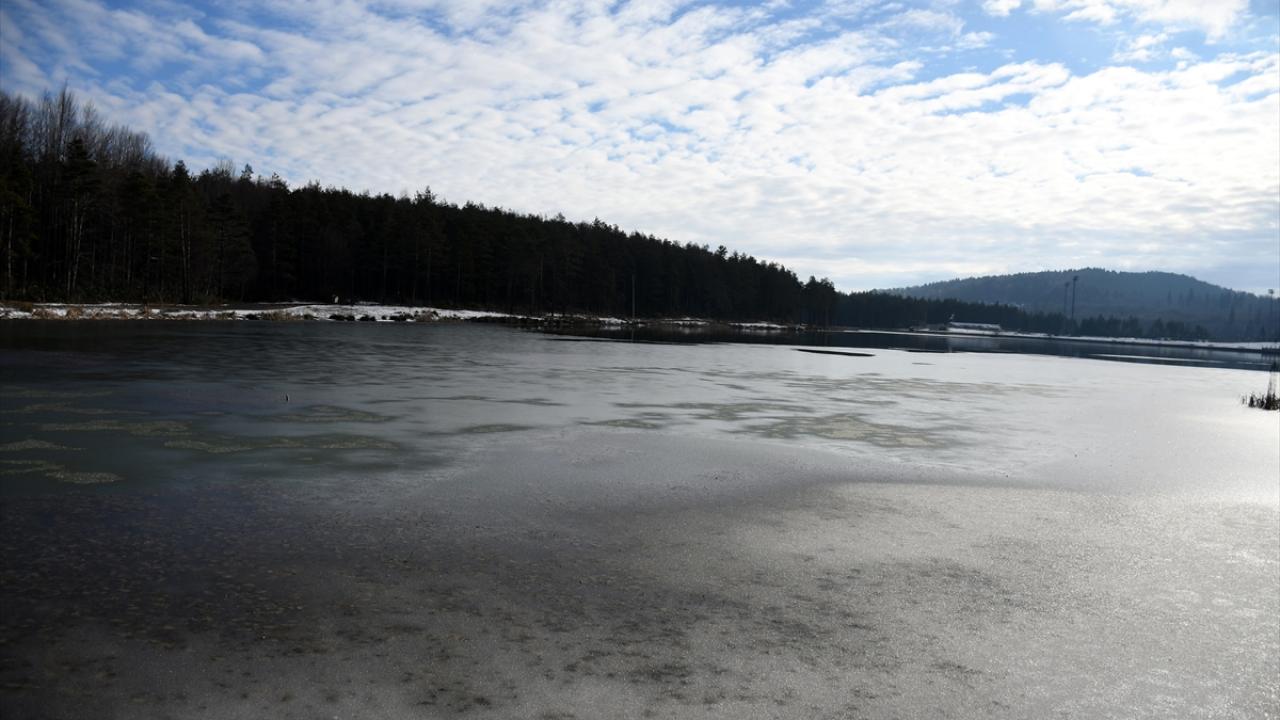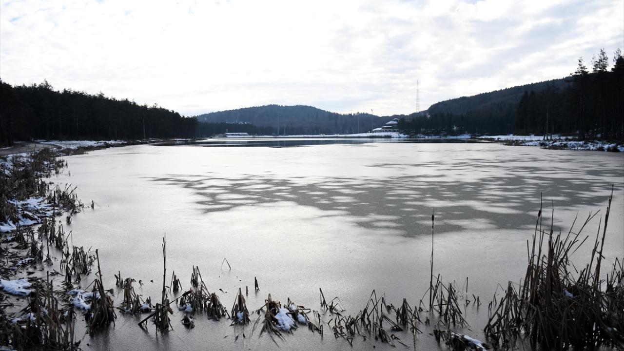 Sarıçam, köknar, kayın ve gürgen ağaçlarıyla çevrili göletin kuzey ve batı kısımlarındaki yüzeylerde kısmi buzlanma görüldü.