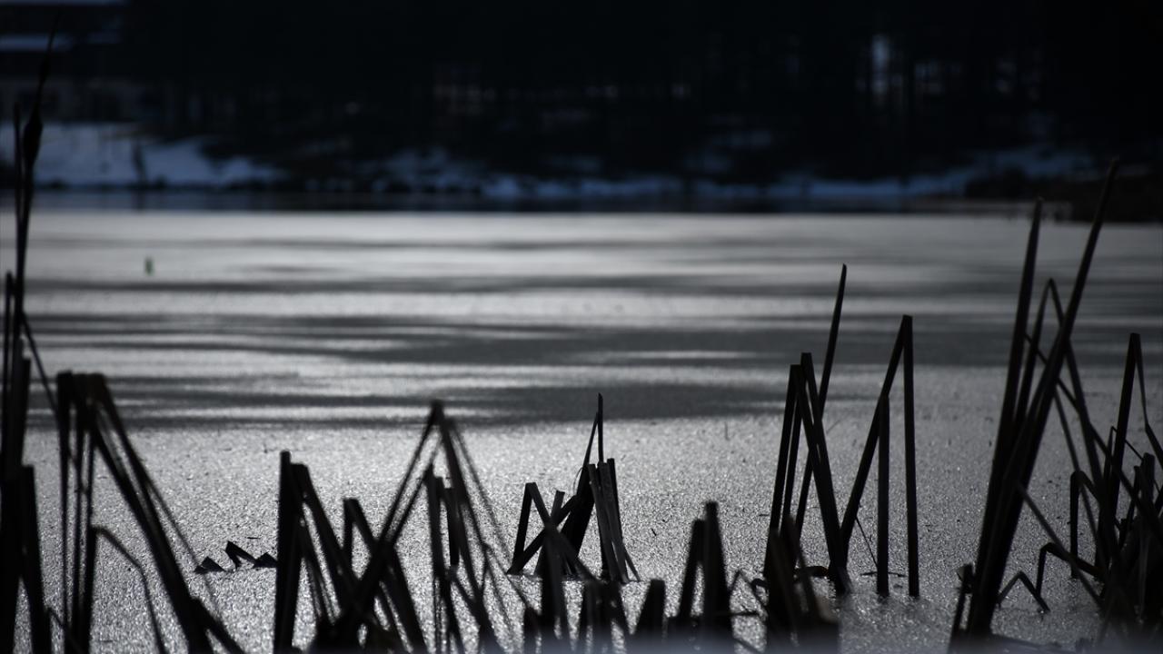 Göletin ince buz tabakasıyla kaplı saydam kısmı ve altında kalan bitki örtüsü güzel görüntüler oluşturdu.