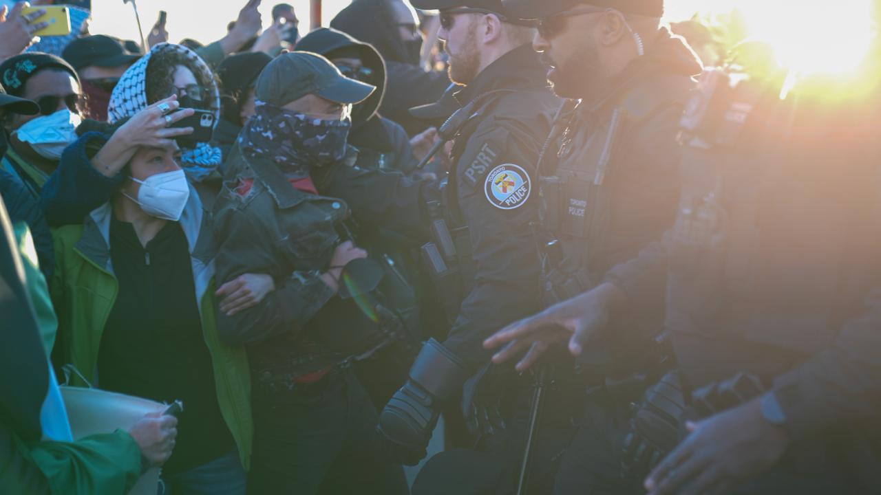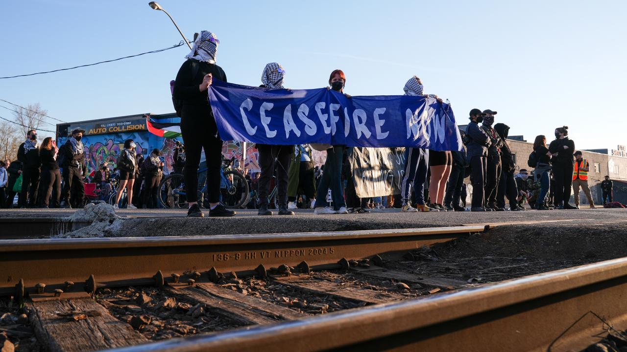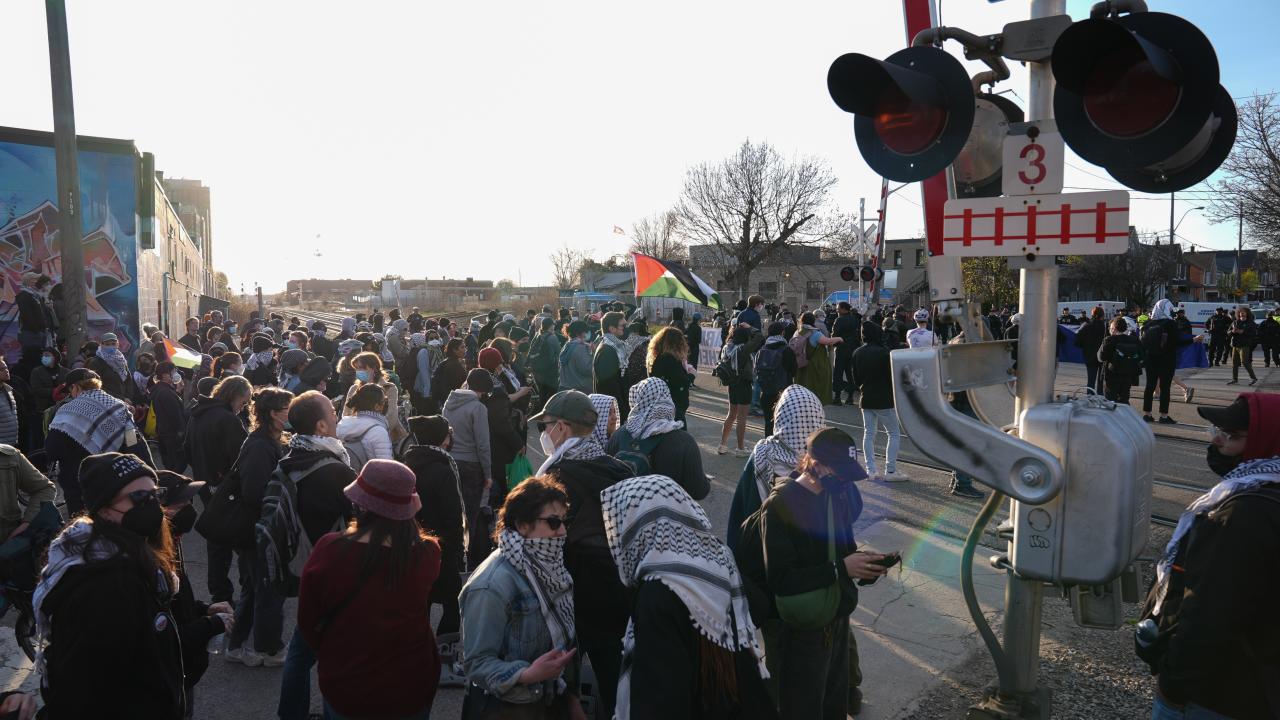 Kanada'nın Toronto kentindeki Filistin destekçisi göstericiler, Pelham Bulvarı ve Osler Caddesi'ndeki bir demiryolu hattı üzerinde gösteri düzenledi. Göstericiler, İsrail'in Gazze'ye yönelik saldırılarını protesto ederek, İsrail'e silah ambargosu uygulanması çağrısında bulundu. Polis ekipleri, bazı göstericileri tutukladı.