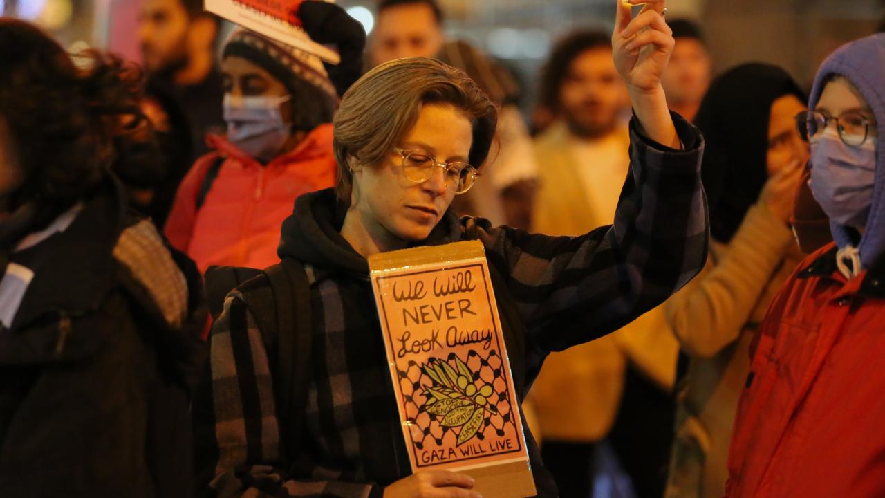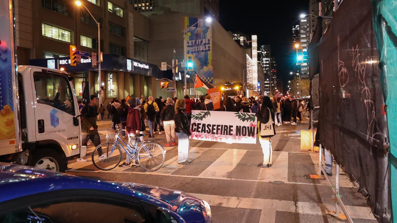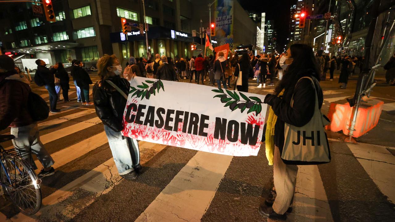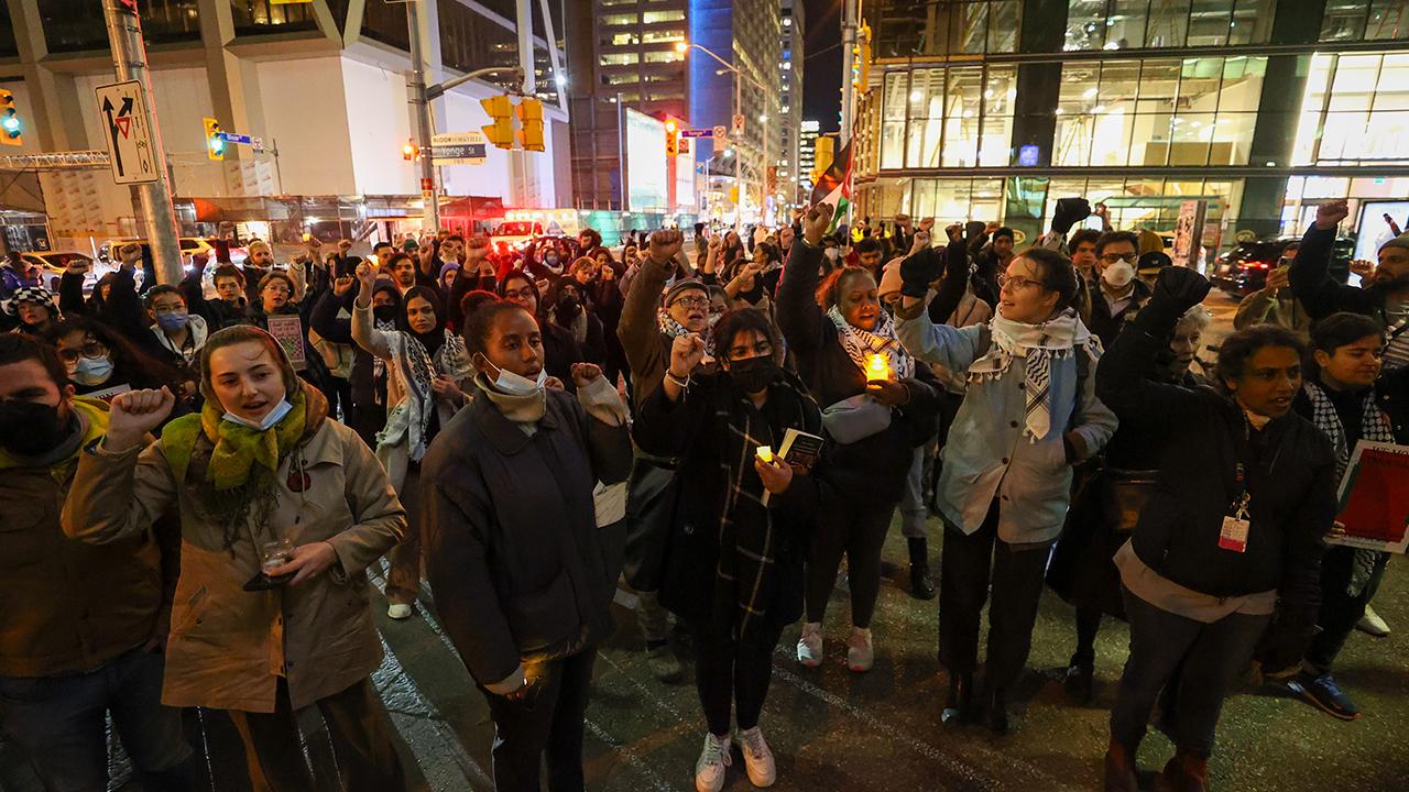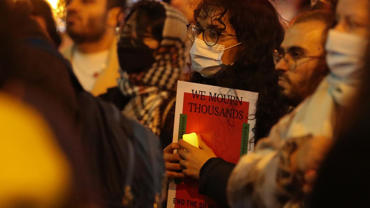 Kanada'nın Ontario eyaletinde yer alan Toronto kentinde sağlık çalışanları ittifakı tarafından Filistin'e destek gösterisi düzenlendi. İsrail Başkonsolosluğu önünde toplanan göstericiler, mumlar yakarak Filistin'e desteklerini gösterdi.