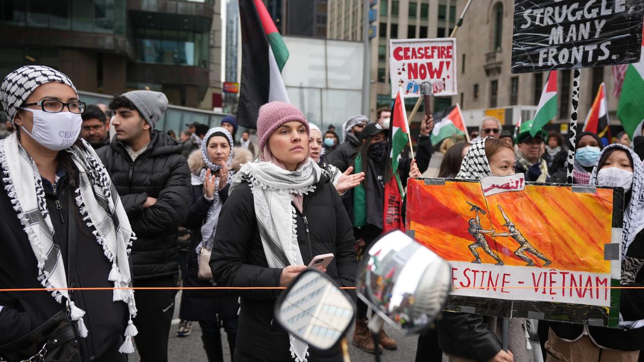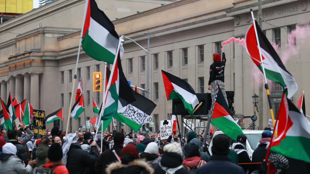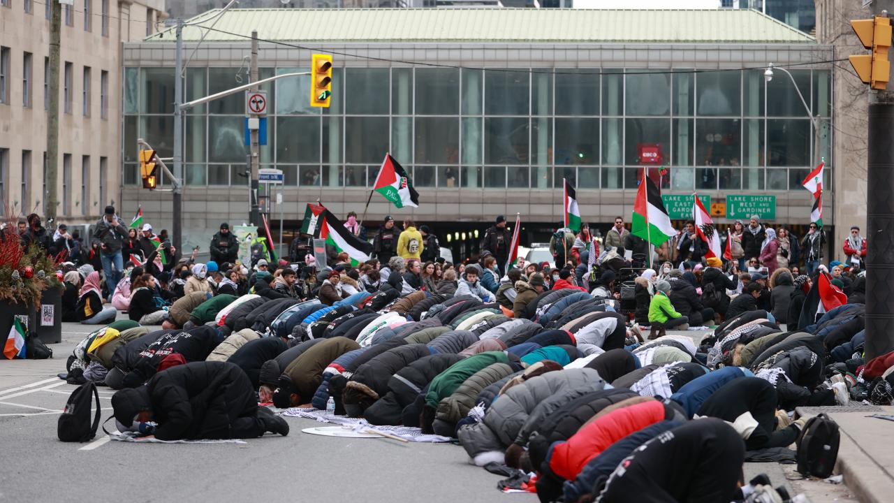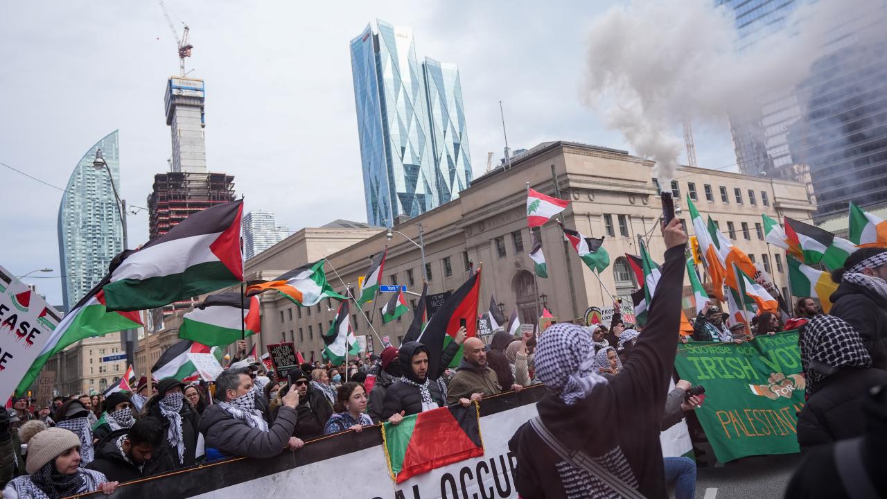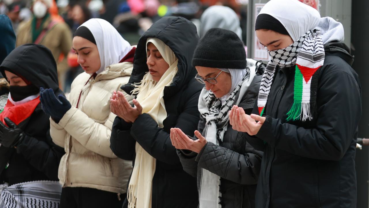 Union İstasyonu çevresinde toplanarak ellerinde pankart ve Filistin bayrakları taşıyan göstericiler, İsrail`in Gazze`ye yönelik saldırılarını protesto etti ve ateşkes çağrısında bulundu.