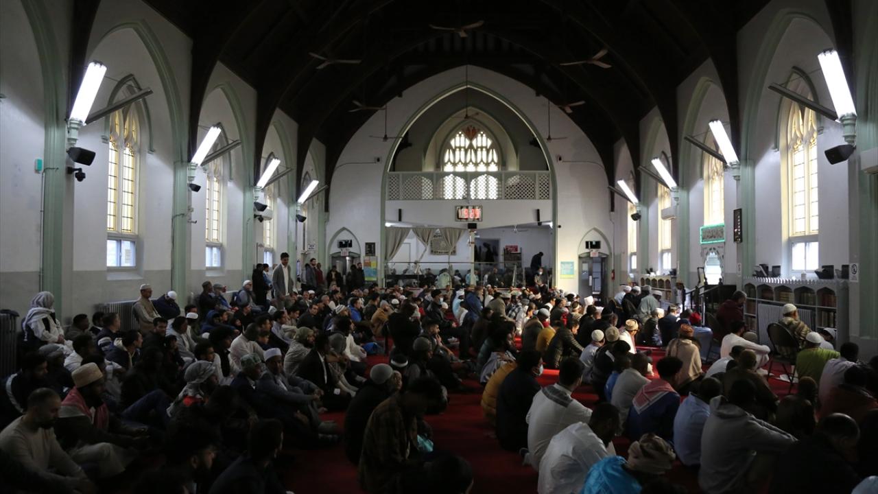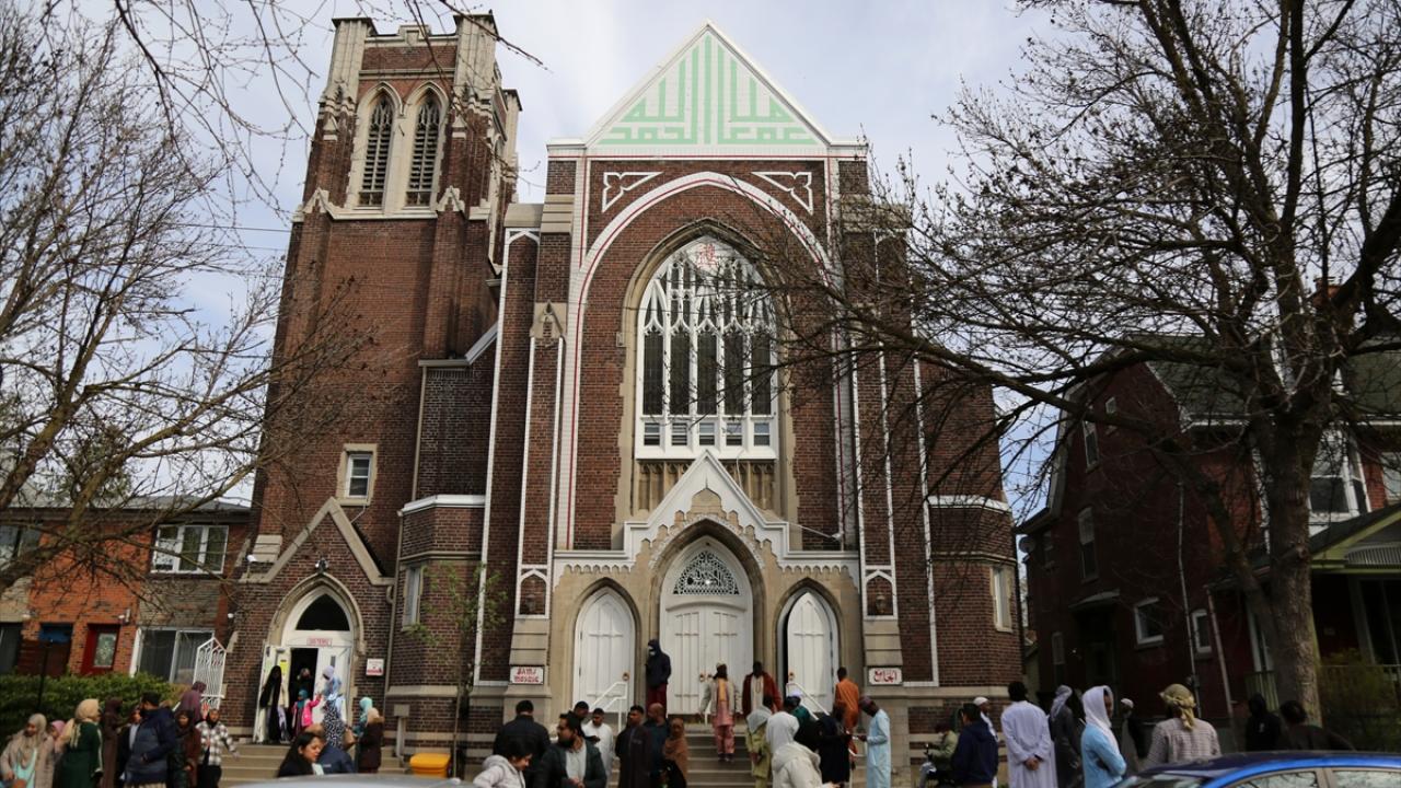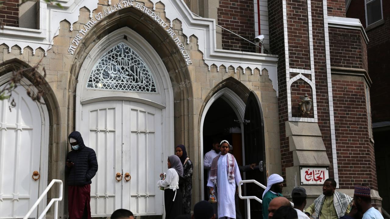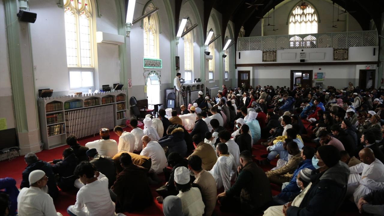 Kanada'nın Ontario eyaletinin Toronto kentindeki Müslümanlar, Ramazan Bayramı namazını kılmak için sabah erken saatlerden itibaren Jamii Cami'de alanda bir araya geldi.