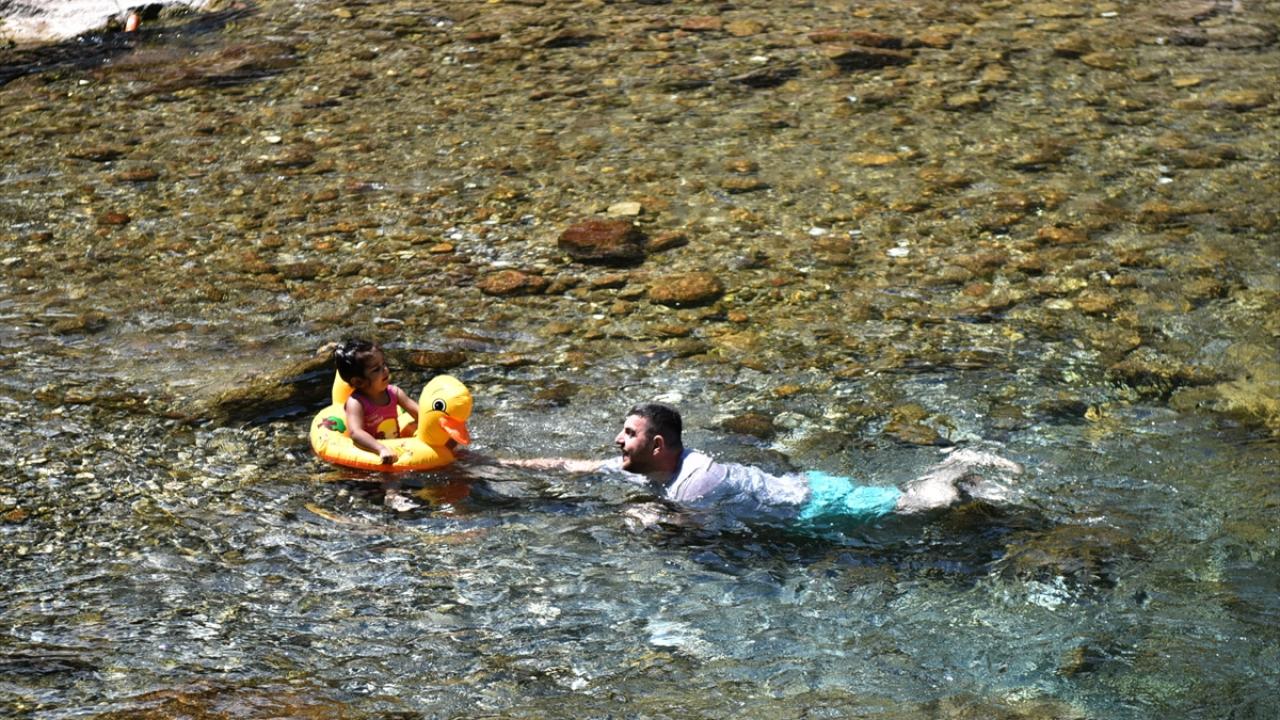 Kanyondaki serin sularda yüzme fırsatı bulan ziyaretçiler, bölgenin doğal güzelliği eşliğinde keyifli zaman geçiriyor.