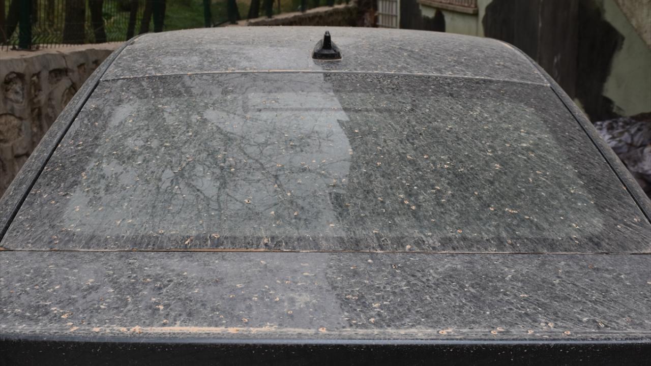 Evlerin pencere ve balkonlarının yanı sıra araçların üzeri tozla kaplandı.