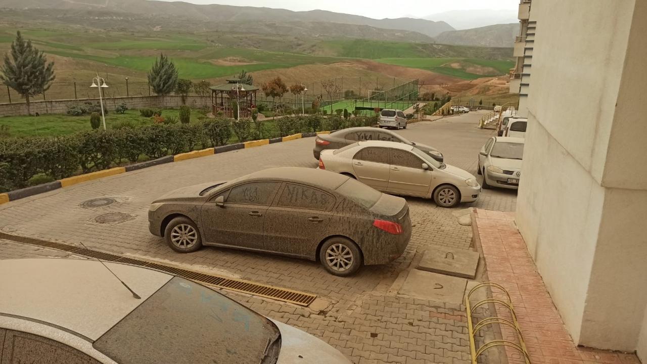 Merkez Cizre, İdil ve Silopi ilçelerinde etkisini artıran toz bulutu nedeniyle araç ve evlerin balkonları tozla kaplandı.