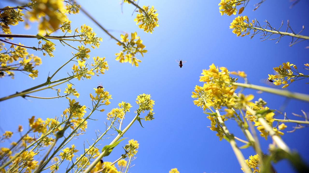 Trabzon'da ilkbaharın gelmesiyle birlikte pancar çiçekleri açtı. Açan çiçekler, sarı renkleriyle güzel görüntüler oluştururken bal arılarını da üzerlerine çekti.