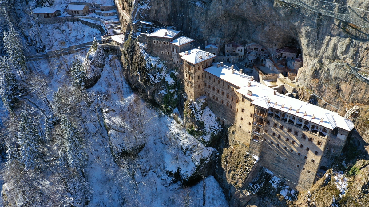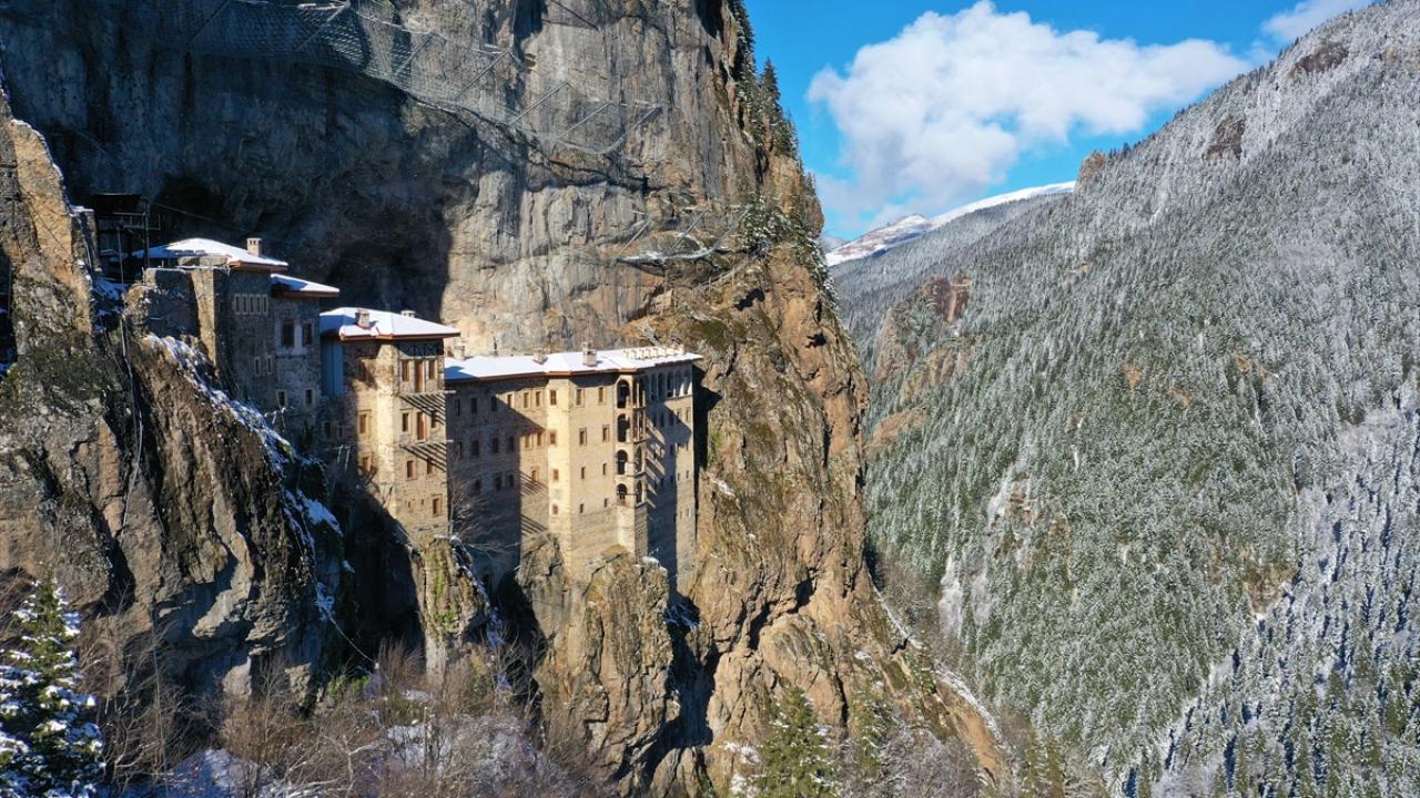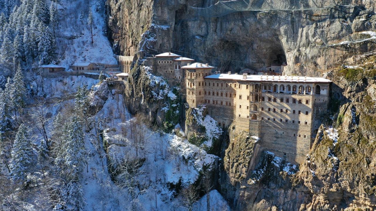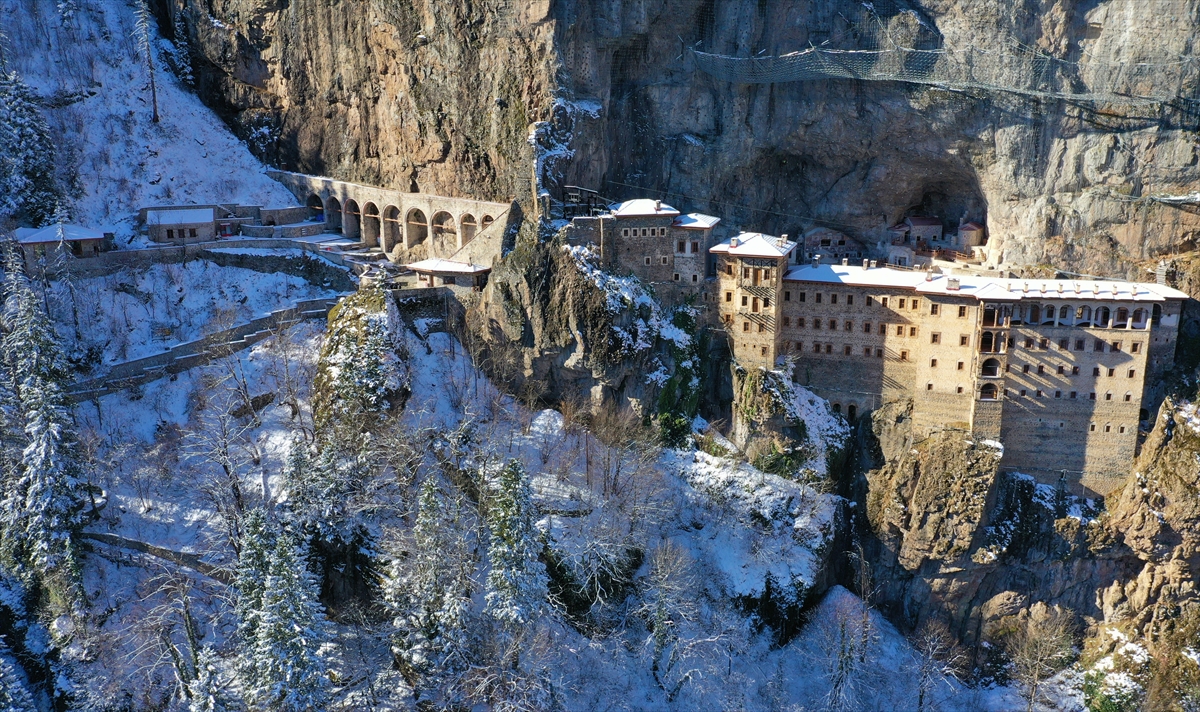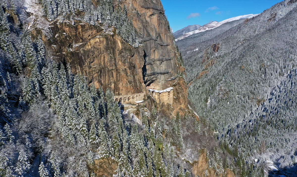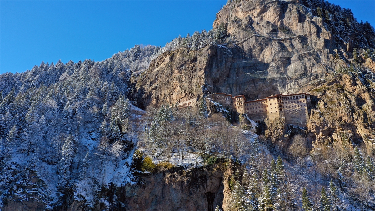 Kış mevsimine rağmen yerli ve yabancı ziyaretçileriyle bölgedeki tarih, kültür ve doğa turizmine önemli katkı sağlayan Sümela Manastırı, Trabzon`a gelenlerin rotasında ilk sırada yer alıyor.