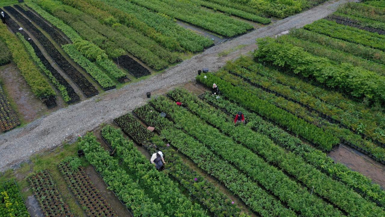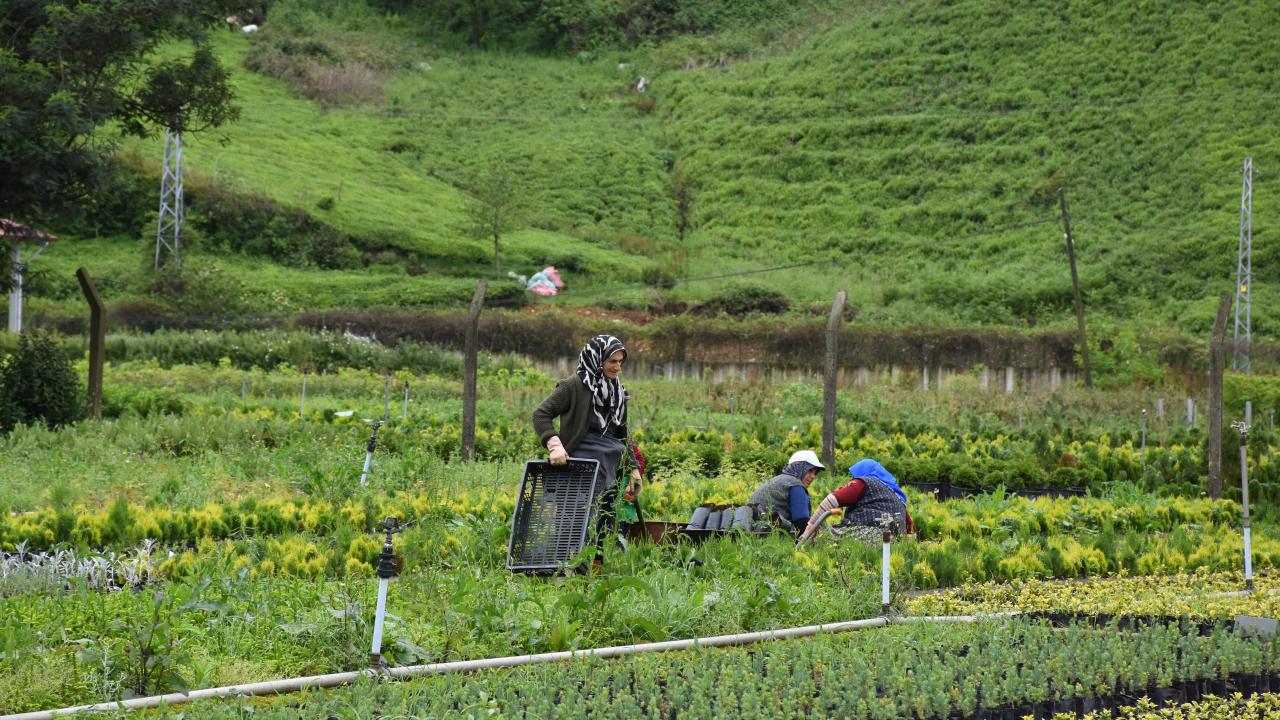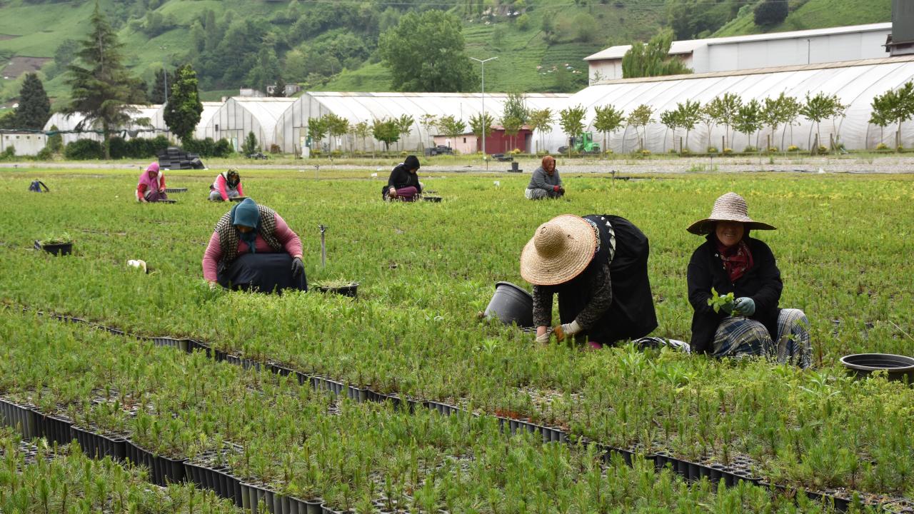 Yöre kadınlarının çalıştığı 25 hektar alanda ekimi tamamlanan çiçek ve fidan türleri, yıl sonuna kadar belirli aralıklarla Trabzon`un yanı sıra Rize, Bayburt ve Gümüşhane`de tespit edilen alanlara dikilecek.