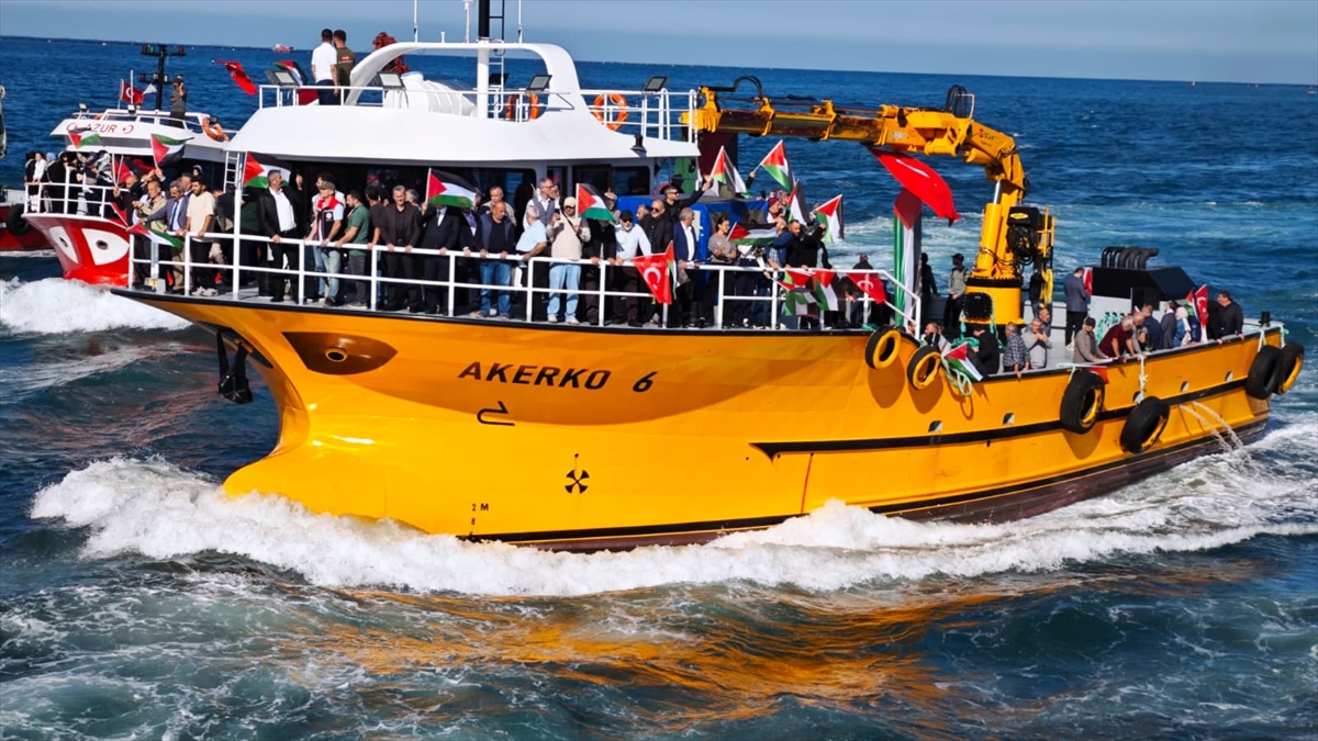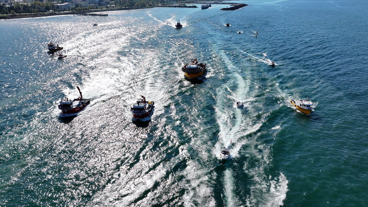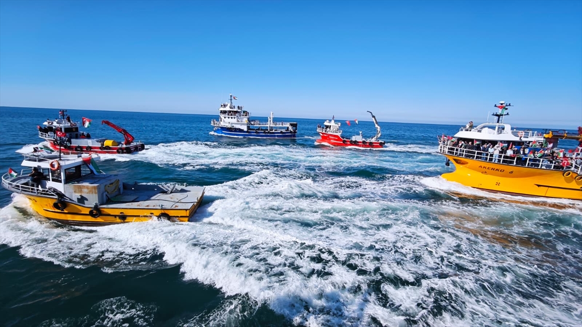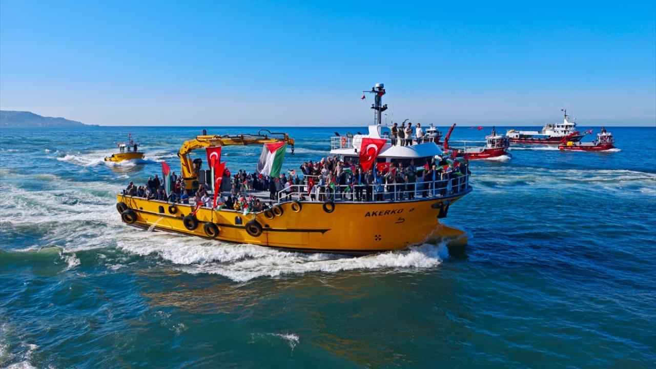 Dua edilmesinin ardından etkinliğe katılanlar Türk ve Filistin bayraklarıyla bindikleri gemi, tekne ve takalarla Karadeniz`e açılarak tur attı.