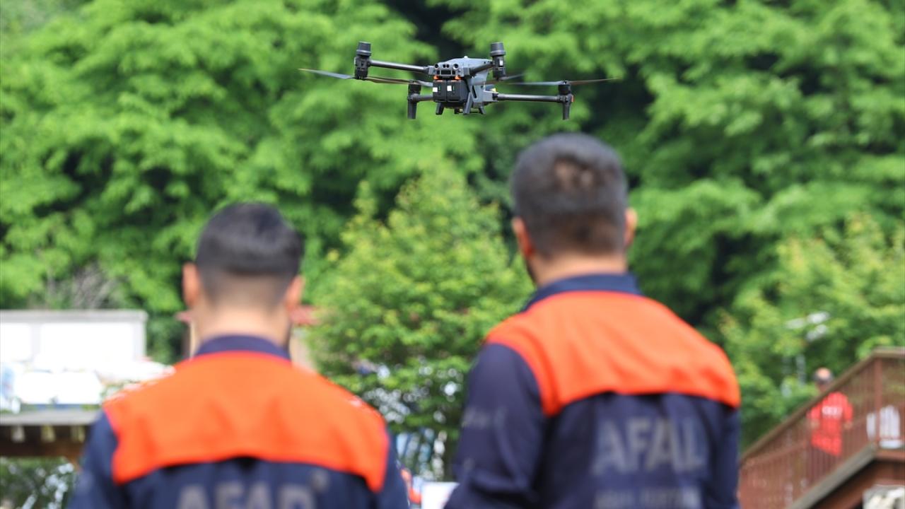 Sera Gölü`nde dalgıçların katıldığı aramalara dron ile destek sağlanıyor.