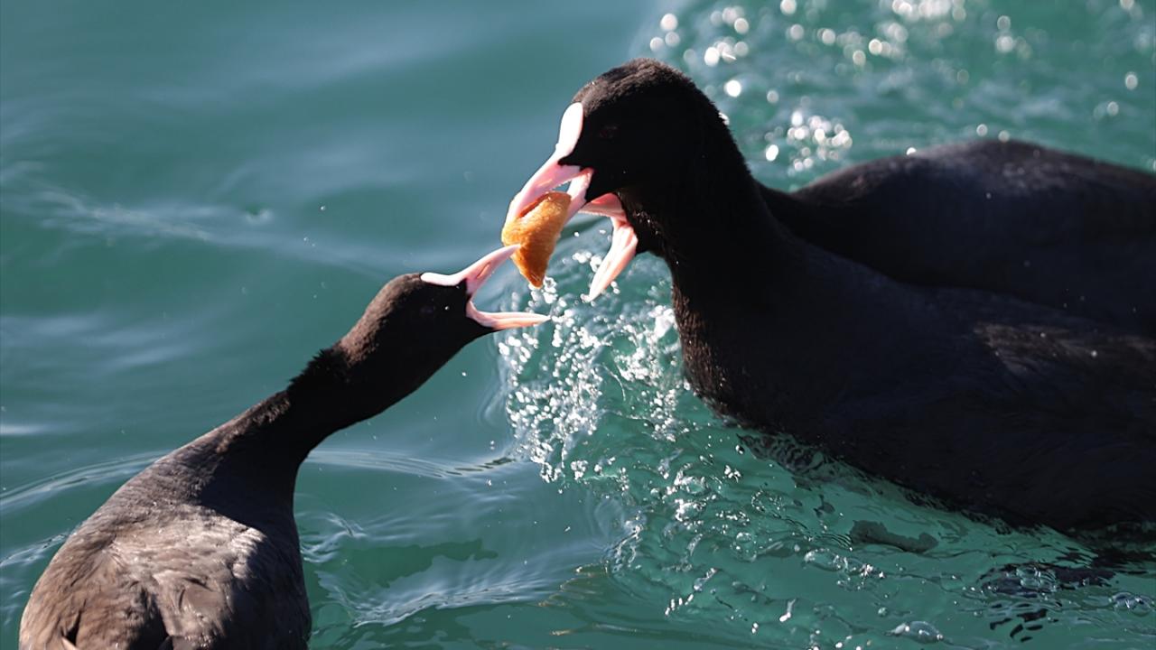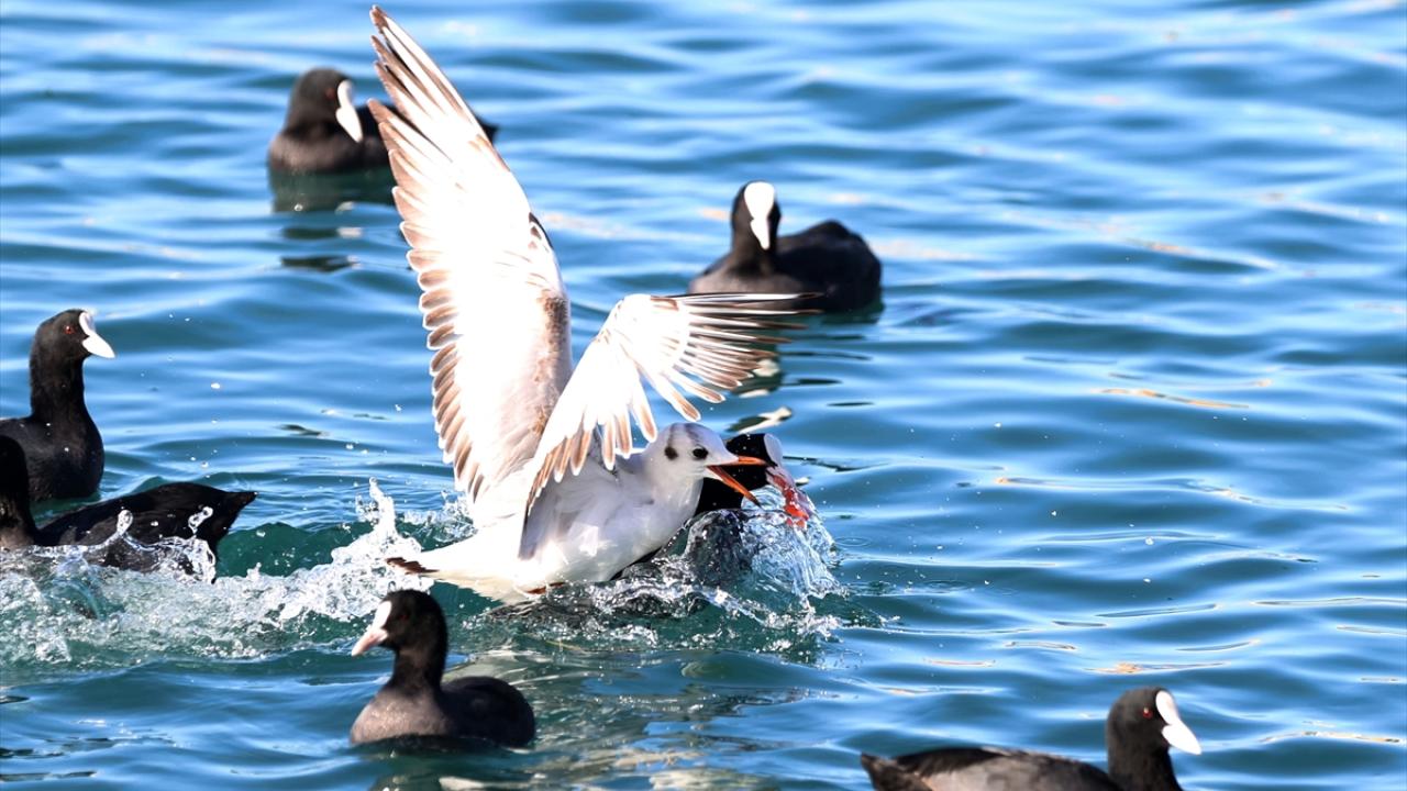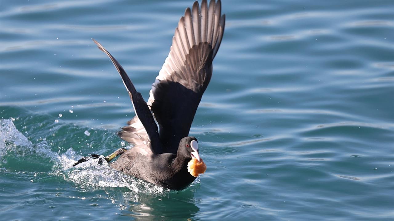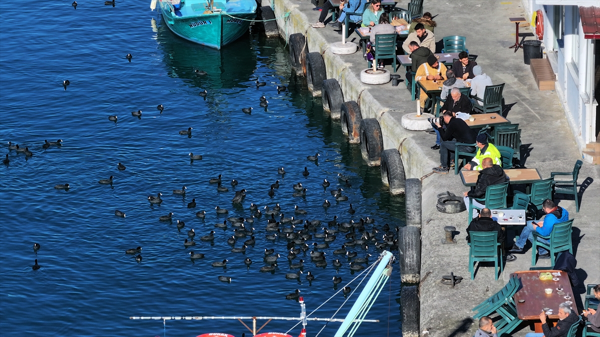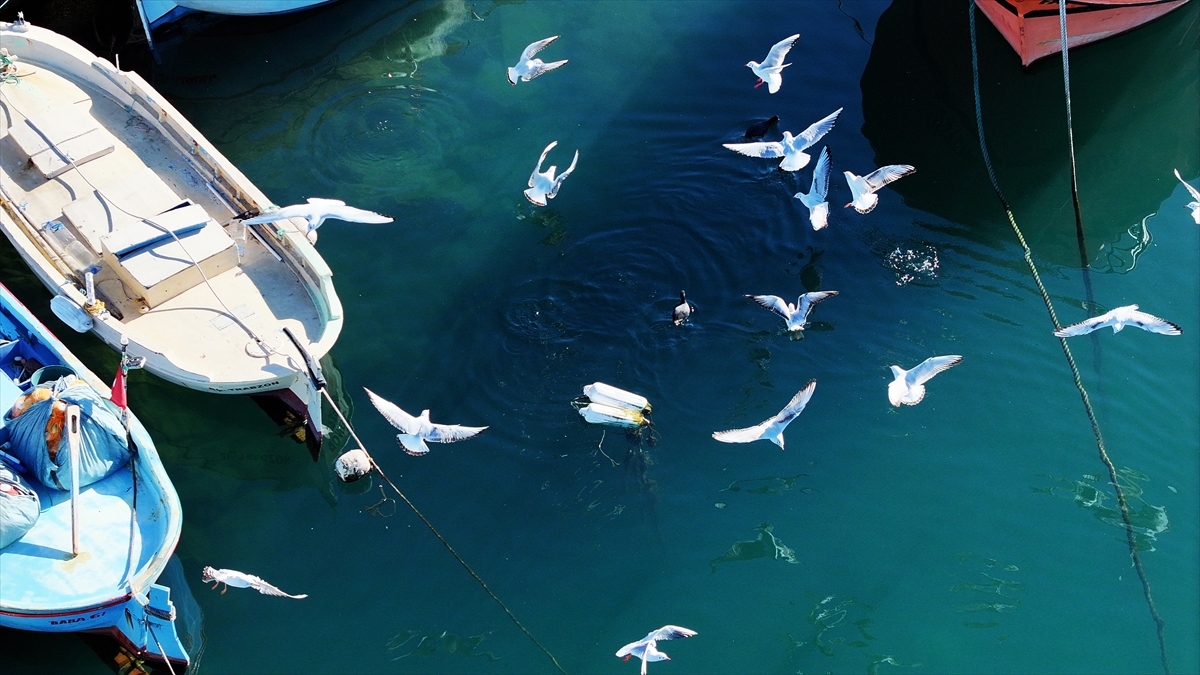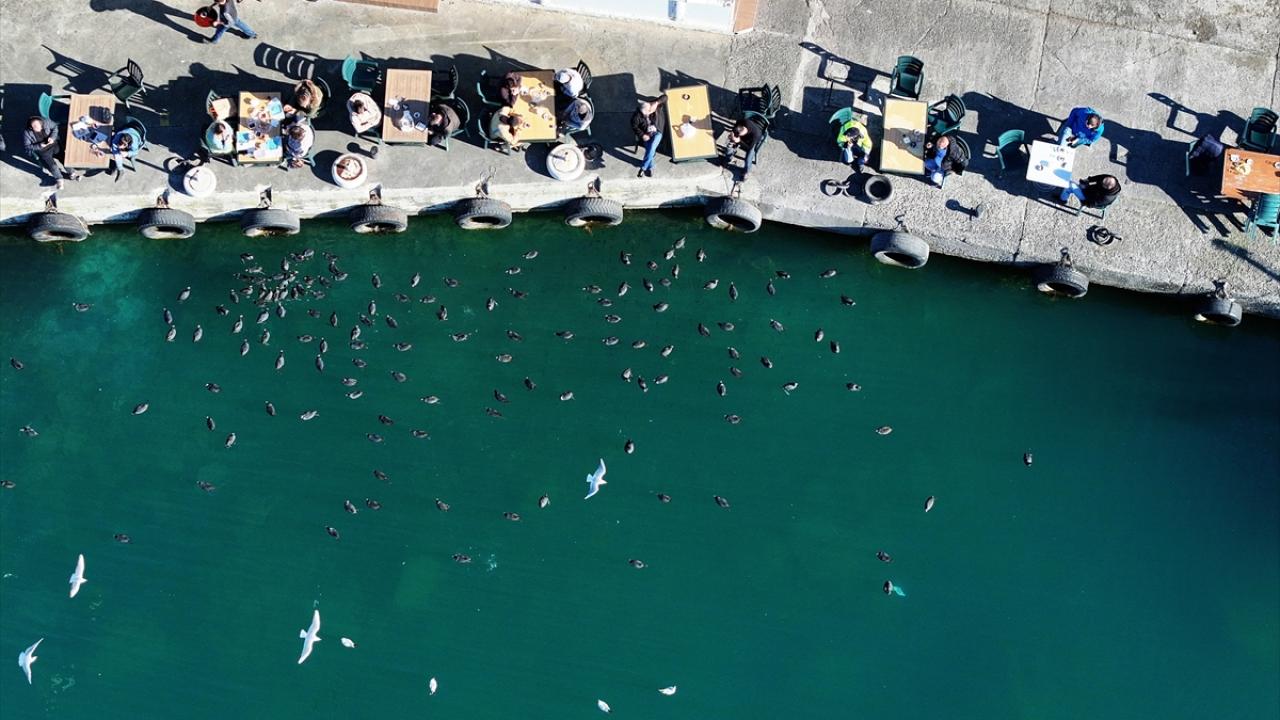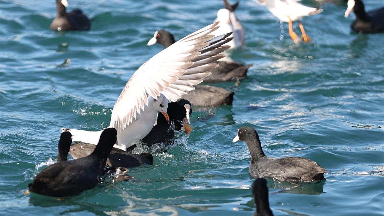 Barınaktaki martı ve sakarmekeler vatandaşların attıkları simitlerle beslendi.