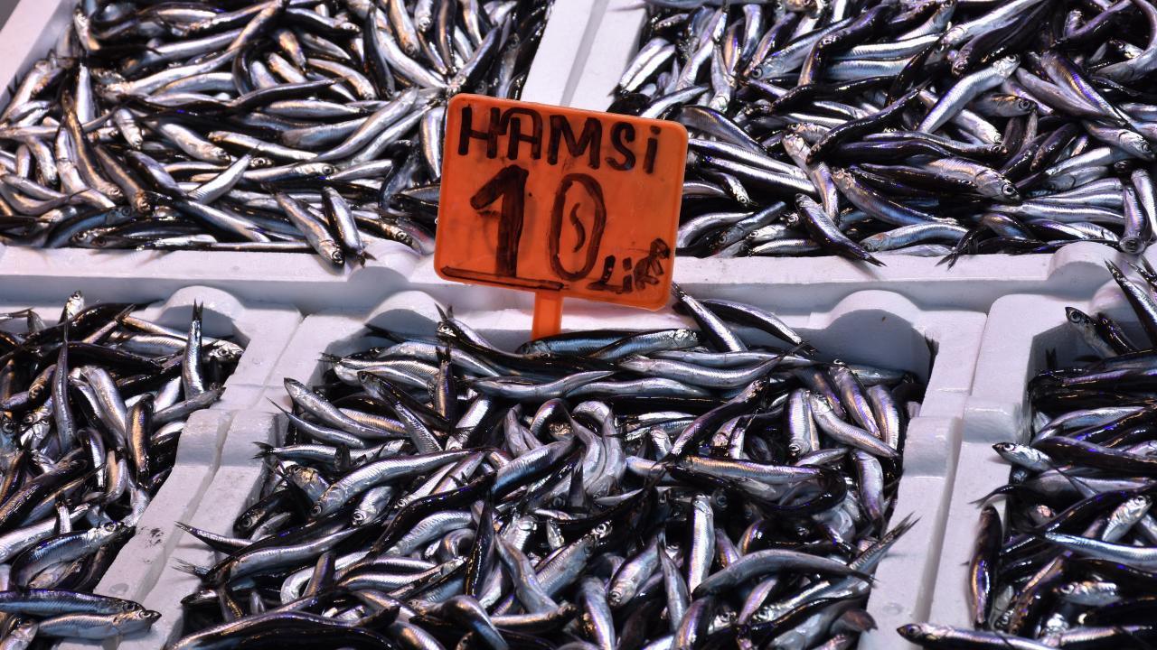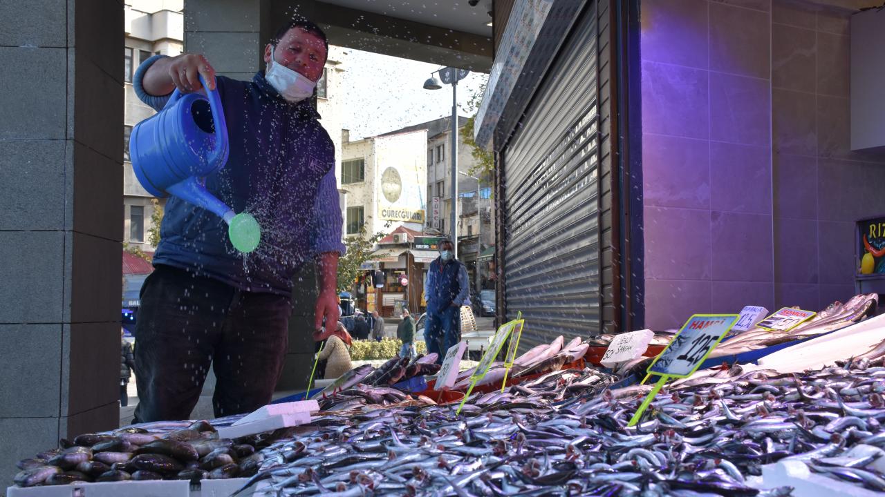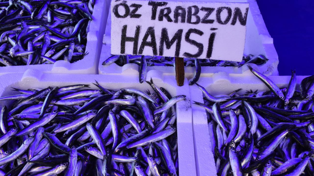 Trabzon'un Ortahisar ilçesindeki Balık Pazarı'nda hafta sonu tezgahları süsleyen hamsi 10 ila 15 liradan satılıyor.