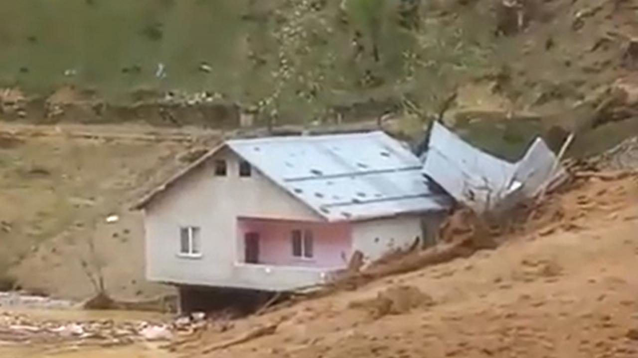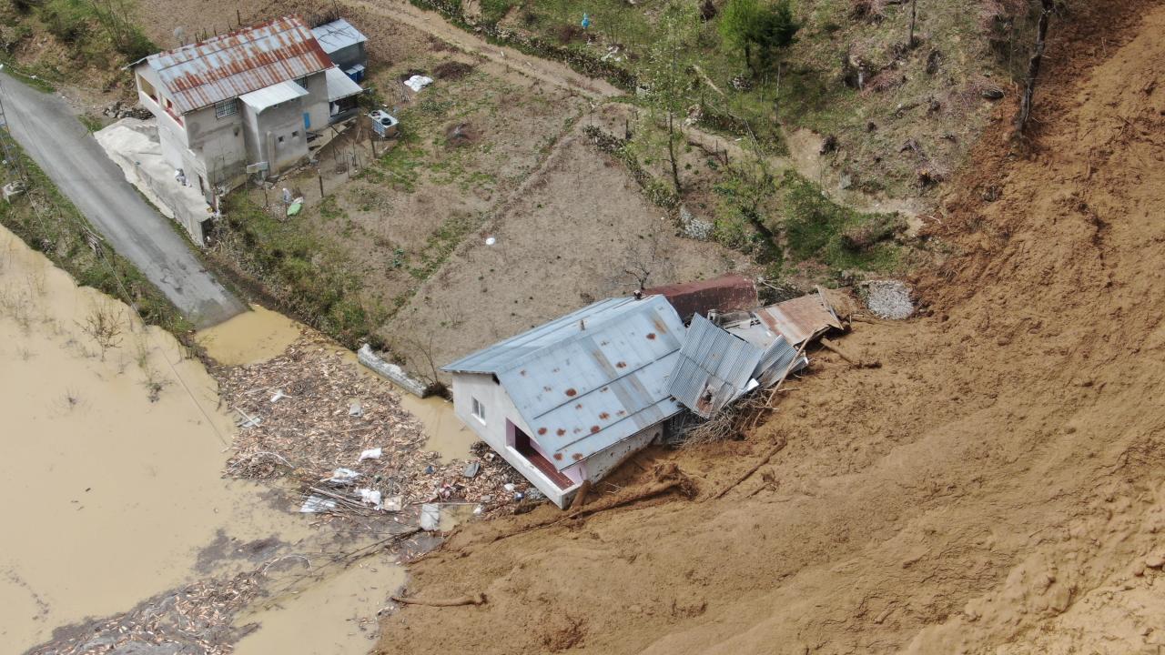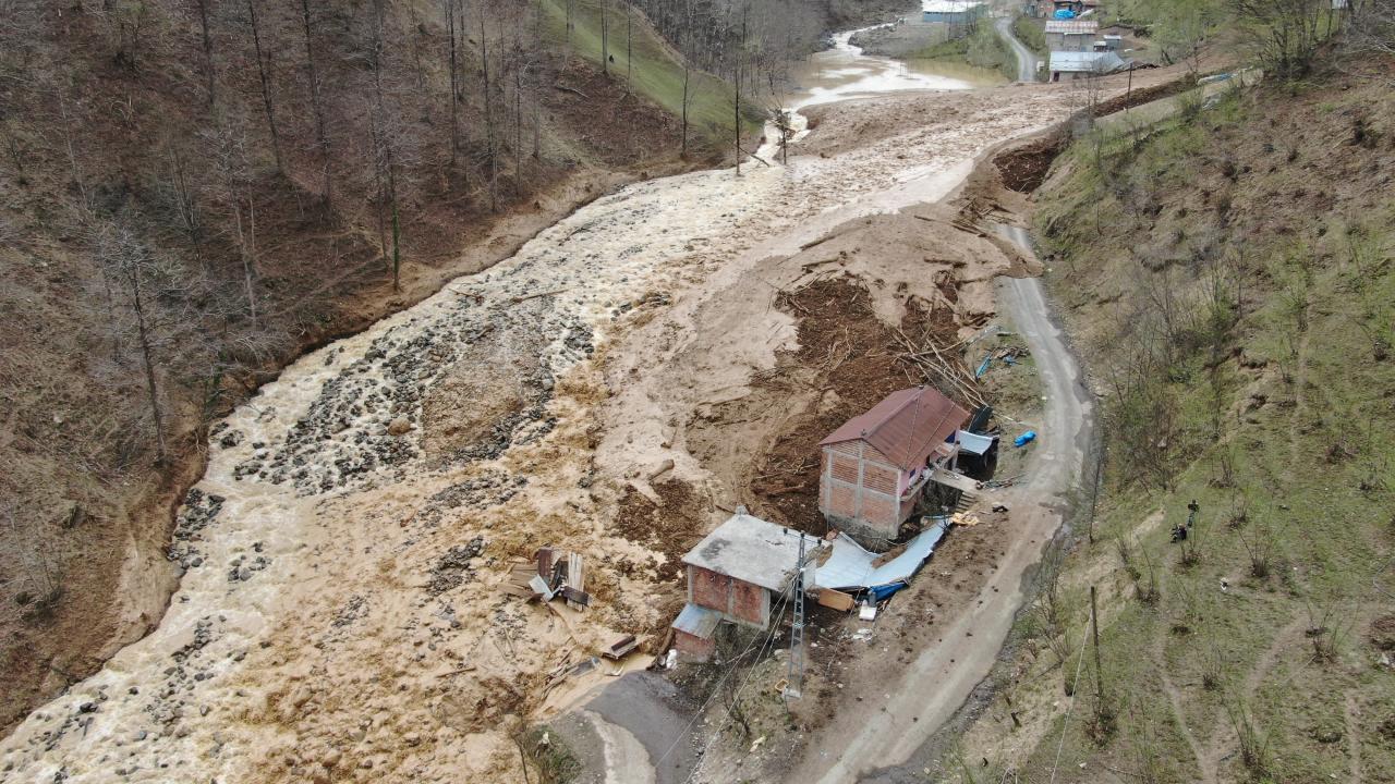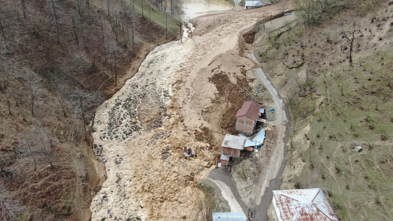 Dik yamaçtan gelen heyelan, evler ve yolu da aşarak Küçük Dere’ye ulaştı.