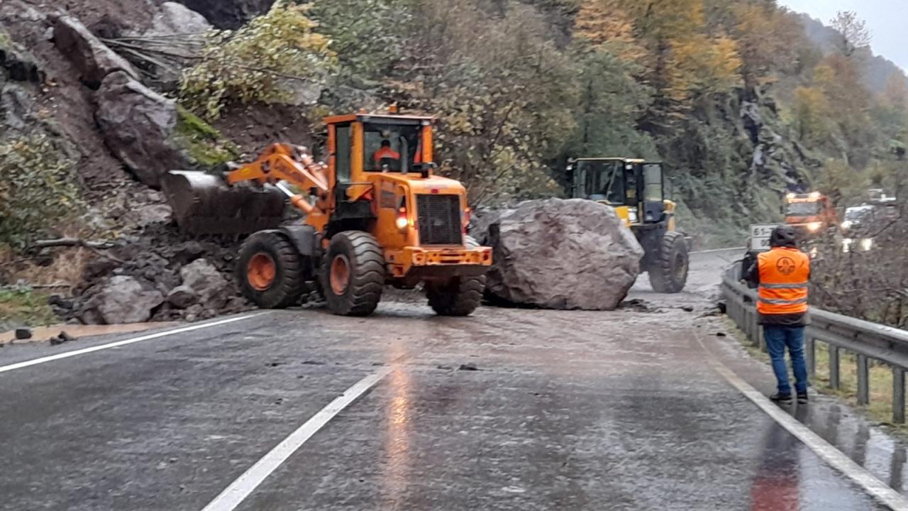 Karayolları ekipleri tarafından iş makinelerinin yardımıyla yolun trafiğe açılması için çalışma başlatılırken, çalışma sırasında da küçük çaplı heyelanlar devam etti.